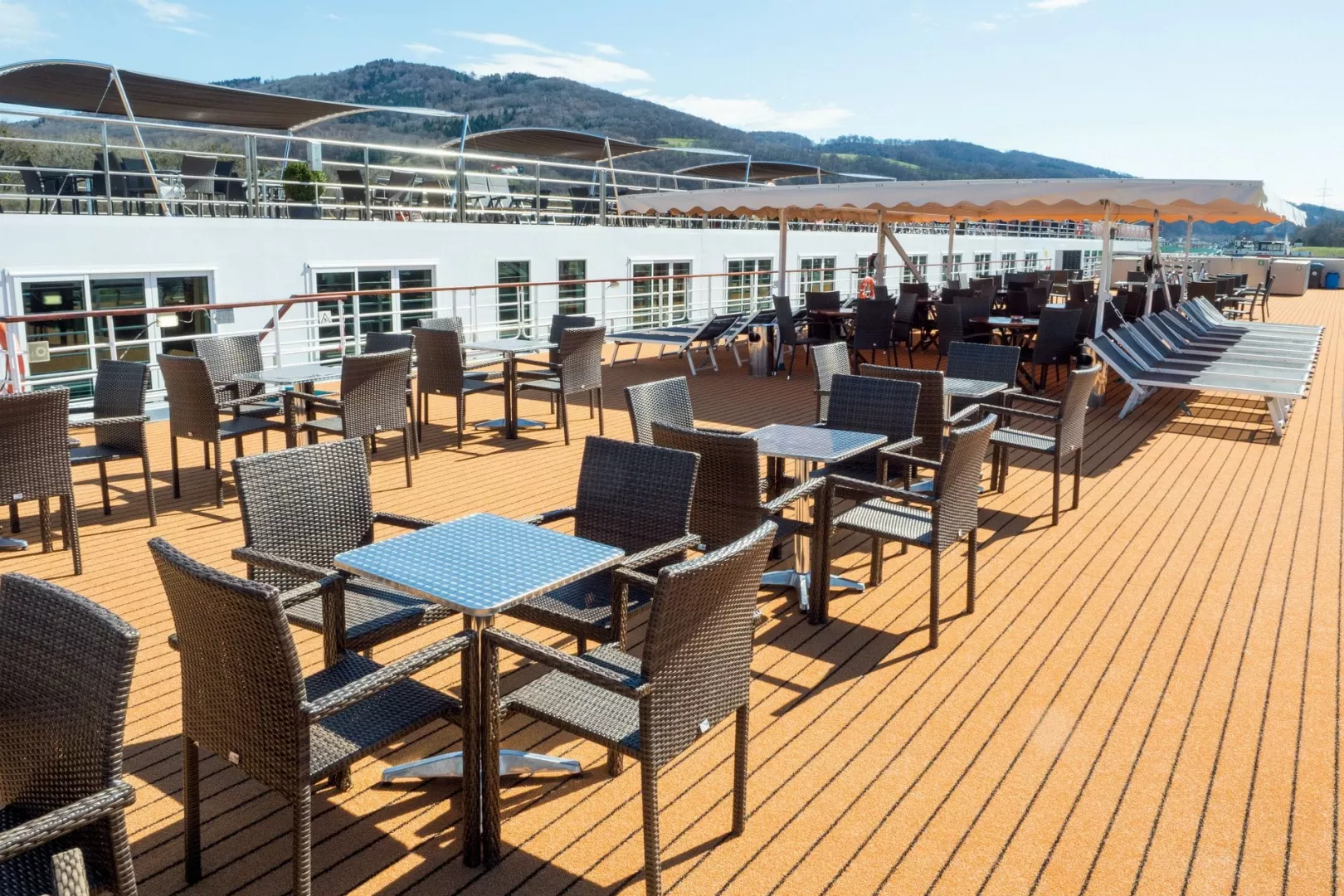 All inclusive Uvítací bufet pri nalodení Prémiový raňajkový bufet, 4-chodové obedové a večerné menu so servisom pri stole a s možnosťou výberu hlavného chodu Nápojový balík zahŕňajúci domáce víno, čapované pivo, nealkoholické nápoje, džúsy, kávu/čaj a minerálnu vodu (09:00–24:00) Denne popoludní káva a koláč alebo neskorý večerný snack Živá hudba na palube Batožinový servis z móla do kajuty a späť Pravidelná výmena posteľnej bielizne v súlade so štandardmi HACCP