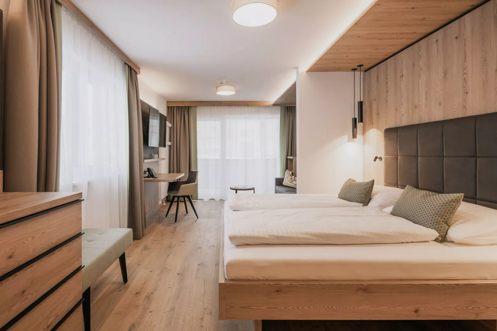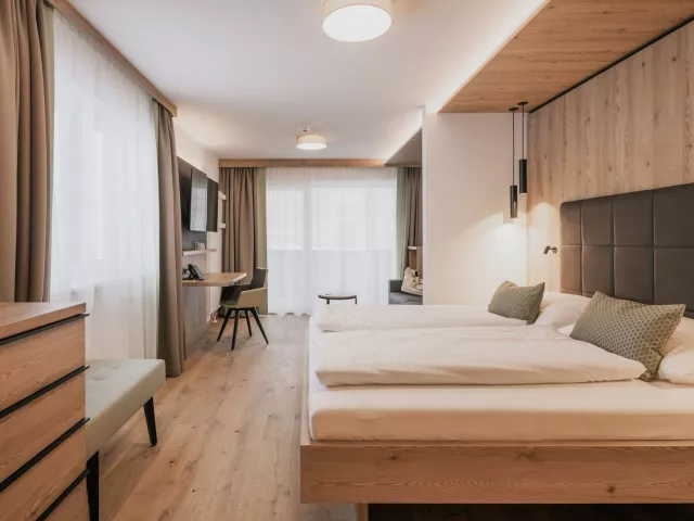 Typy izieb zahŕňajú Superior izbu (cca 27 m², pre max. 2 dospelé osoby + 2 deti), Rodinnú izbu (cca 64 m², pre max. 6 osôb) a Junior suit (cca 49 m², pre max. 4 osoby).