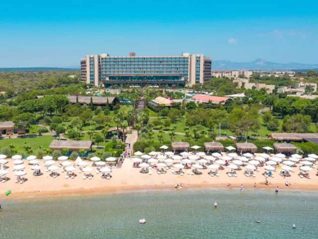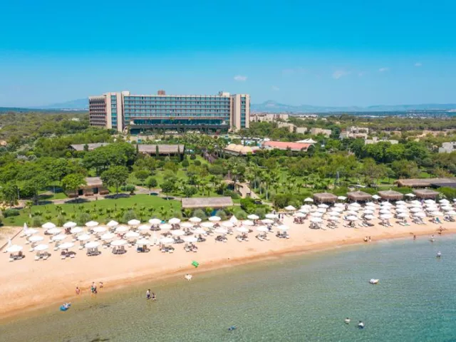 Nádherná široká pláž so zlatistým pieskom a pozvoľným vstupom do mora. K dispozícii sú luxusné kabany na pláži a móle za poplatok, bezplatný plážový servis a centrum vodných športov za poplatok.