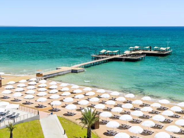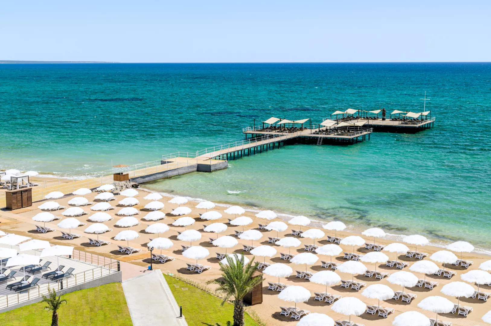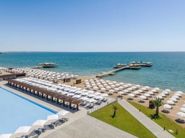 Novootvorený 5* luxusný rezort sa nachádza na krásnom pobreží severného Cypru priamo na nádhernej až 1 km dlhej piesočnej pláži. Hotel je navrhnutý ako dokonalá kombinácia oddychu, gastronomických zážitkov z jedál svetovej kuchyne a zábavy pre všetky vekové kategórie. Priestranné izby a bohaté ultra all-inclusive služby sú ďalším plusom. Jeho poloha, len 20 km od Famagusty, poskytuje jedinečnú príležitosť na návštevu Varoshi - mesta duchov, ktoré sa po 48 rokoch opäť otvorilo pre turistov.