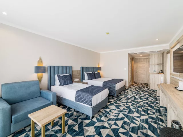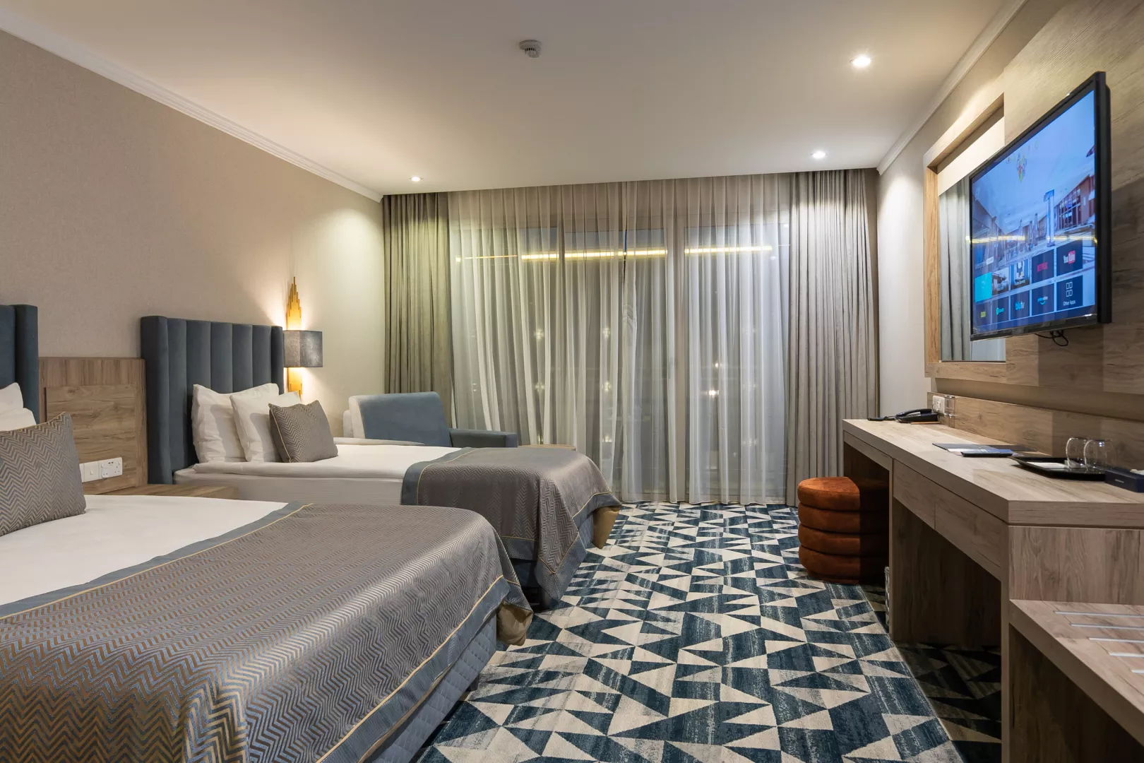 Každá izba je vybavená klimatizáciou, vlastnou kúpeľňou s WC, sušičom vlasov, telefónom, plazmovou TV, trezorom (zdarma), kanvicou a minibarom s nealkoholickými nápojmi, pivom a vodou (dopĺňaný raz denne zdarma). Samozrejmosťou je aj Wi-Fi (zdarma) a balkón.