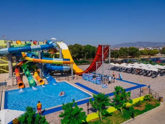 Rezort ponúka 396 izieb, vstupnú halu s recepciou, hlavnú reštauráciu, dve à la carte reštaurácie (za poplatok) a tri bary. Pripojenie na Wi-Fi je dostupné v celom areáli, vrátane internetového kútika. Nechýba ani vonkajší bazén s ležadlami a slnečníkmi. Na športové aktivity sú k dispozícii stolný tenis, plážový volejbal, tenis a mini futbal (rezervácia vopred). Pre deti je pripravený mini klub a aquapark, ako aj konferenčné miestnosti a služby práčovne (za poplatok).