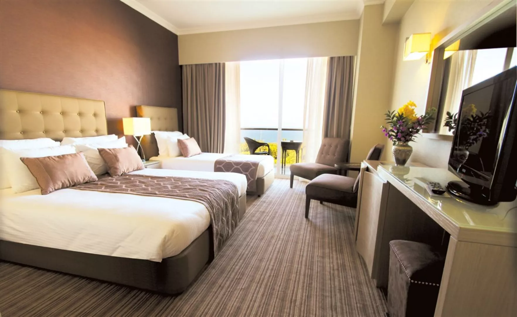 elegantne zariadené 2-lôžkové izby s možnosťou 1-2 prísteliek v hlavnej budove, v časti Pine Court I a II • • TV • telefón • minibar (za poplatok, fľaša vody dopĺňaná denne) • wifi • klimatizácia • trezor (zdarma) • set na prípravu kávy a čaju • sušič na vlasy • kúpeľňa so sprchou alebo vaňou, WC • balkón s posedením