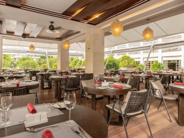 V hoteli je k dispozícii raňajkový bufet, ako aj možnosť priplatiť si polpenziu v hlavnej reštaurácii. Resort ponúka aj dve à la carte reštaurácie a bar.