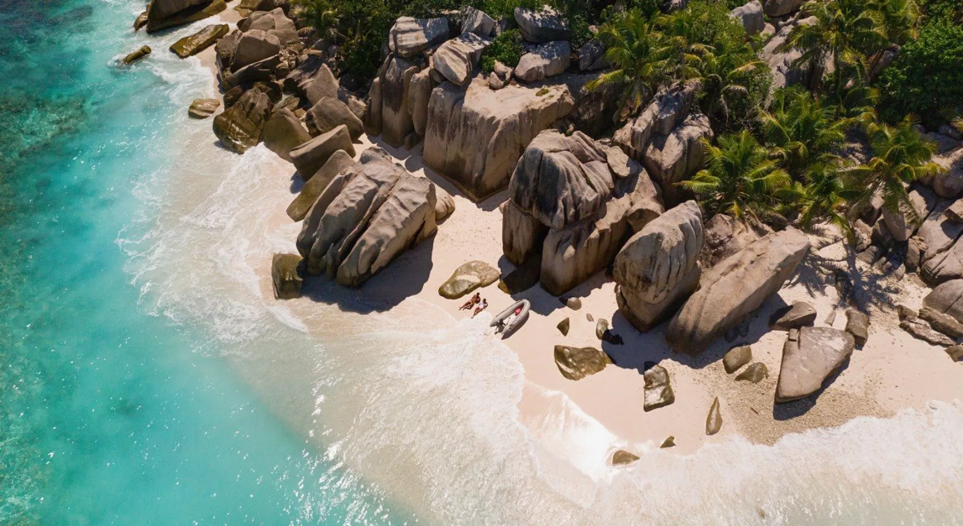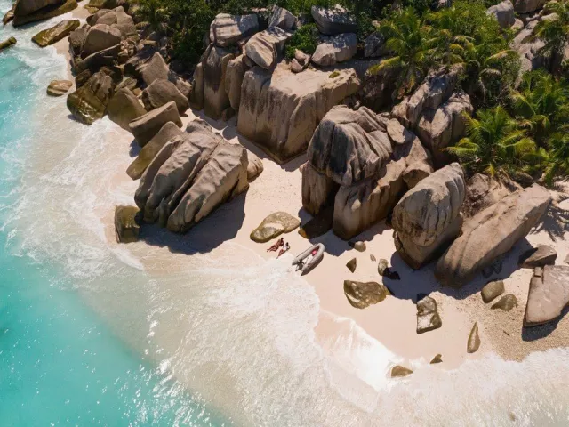 Luxusní hotel Raffles se nachází na severovýchodě ostrova Praslin uprostřed zeleně s překrásnými žulovými skalami. Jízda autem do přístavu v Mahé, cesta lodí a poté autem do hotelu trvá cca 1 hod a 40 min. Cesta letadlem a poté autem do hotelu trvá 50 min.