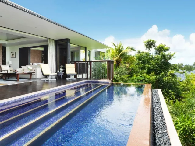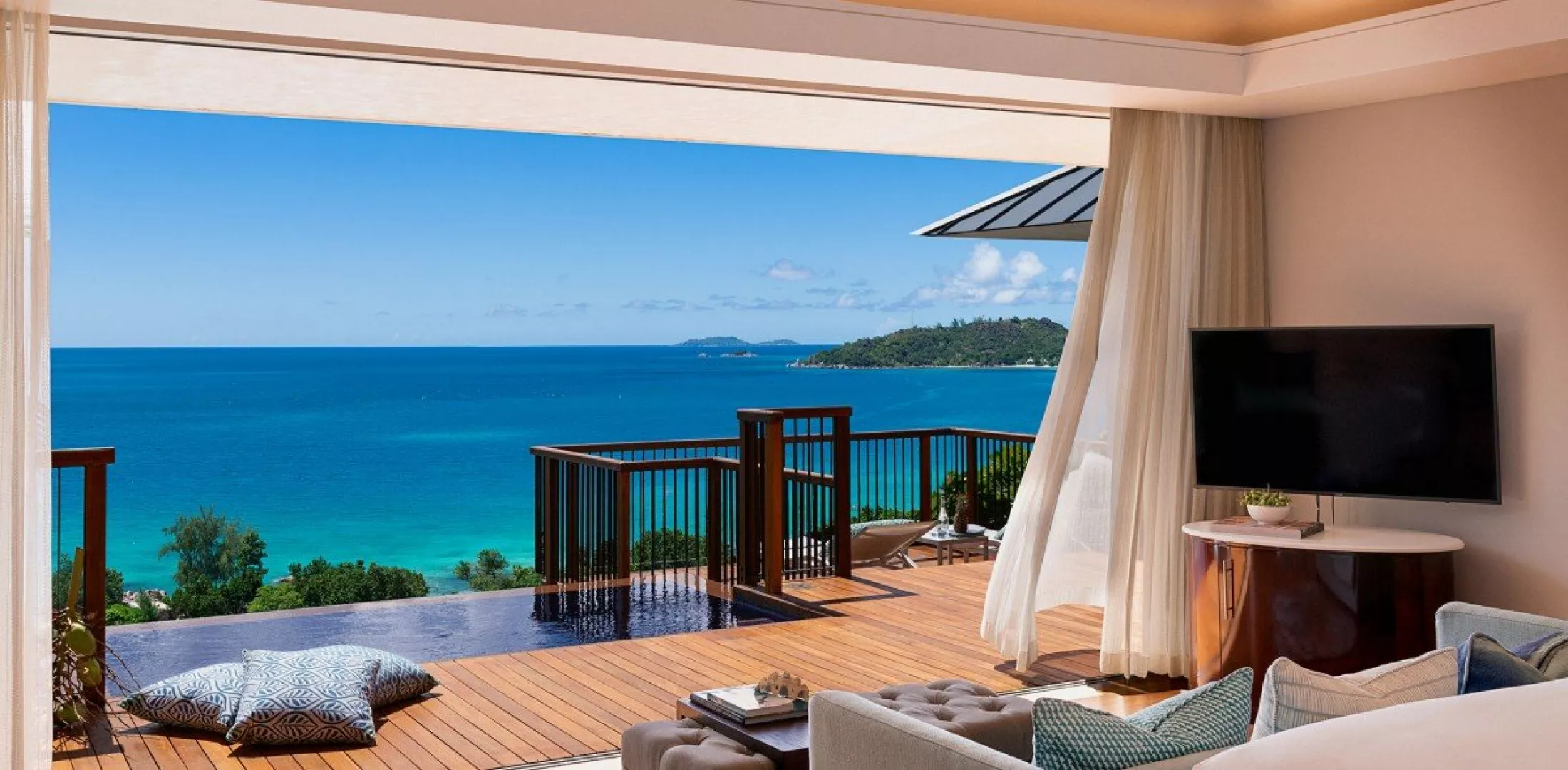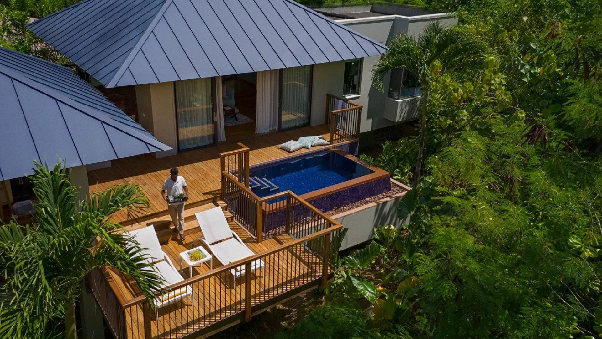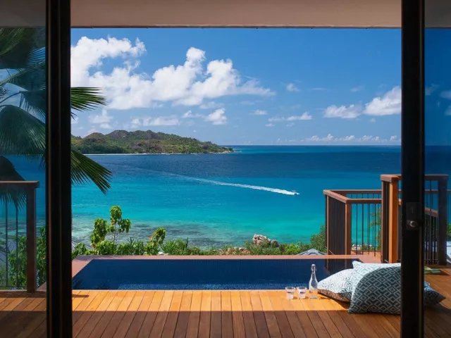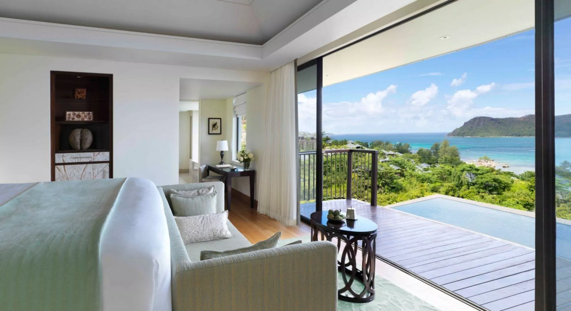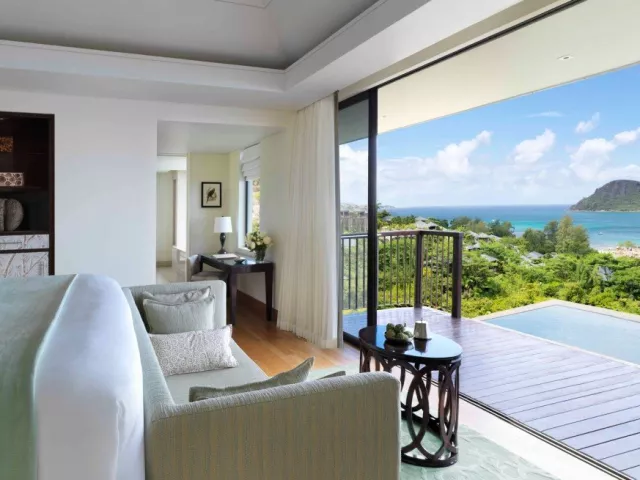 Resort má k dispozici celkem 86 vil navržených v moderním stylu, každou s vlastním bazénem a rozšiřujícím venkovním pavilónem. Jedno a dvoupokojové Villa Suites mohou využívat i zahradního grilu ve venkovním pavilónu. Vily patří k těm nejprostornějším na Seychelách. Jejich minimální výměra činí 125 metrů čtverečních a jsou postaveny na mírných svazích. Villas: Všechny vily disponují následujícím vybavením: privátním bazénem, velkou terasou s lehátky, venkovním jídelním pavilonem, trezorem, hypo-alergenními lůžkovinami, dvojitou šatnou, barem, psacím stolem, Nespresso kávovarem a příslušenstvím k přípravě čaje, karimatkou na jógu, malířským stojanem a skicářem. V každé vile se nachází prostorná koupelna plná denního světla. Uvnitř se ukrývá vana s krásným výhledem, oddělená toaleta, sprchový kout a užít si můžete i venkovní sprchu. Vily se pyšní i moderními technologiemi, jako je vysokorychlostní připojení k internetu, plazmová televize, DVD přehrávač, příslušenství k MP3 přehrávačům, noční osvětlení a servisní panel. Součástí pobytu ve vilách je i tento servis: 24 hodinová pokojová služba, servis prádelny, hlídání dětí, transfer luxusním vozidlem, místní výlety a exkurze, lázeňské procedury, venkovní aktivity a vodní sporty, denní tisk a lekce jógy a pilates. Dále i přístup do DVD Library, dětského klubu The Sugar Palm a služby komorníka. Villas Suites: Tyto krásné a prostorné příbytky jsou vybaveny: privátním bazénem, velkou terasou s lehátky, venkovním jídelním pavilonem, barbecue grilem, kuchyní s ledničkou a mikrovlnou troubou, obývacím pokojem, jídelnou, dvojitou šatnou, trezorem, hypo-alergenními lůžkovinami, barem, psacím stolem, Nespresso kávovarem, příslušenstvím k přípravě čaje, karimatkou na jógu, malířským stojanem a skicářem. Koupelna obsahuje vanu s výhledem, sprchový kout, oddělenou toaletu a venkovní sprchu. Prostory jsou moderně zařízeny a nabízejí tyto technologické vymoženosti: vysokorychlostní připojení k internetu, LED televizi, DVD přehrávač, příslušenství k MP3 přehrávačům, stanici pro iPod, ovládání světel a servisní panel. Jako hosté Villas Suites budete mít k dispozici i následující servis: 24 hodinová pokojová služba, servis prádelny, hlídání dětí, transfer luxusním vozidlem, místní výlety a exkurze, lázeňské procedury, venkovní aktivity a vodní sporty, denní tisk a lekce jógy a pilates. Dále i přístup do DVD Library, dětského klubu The Sugar Palm a služby komorníka. Hillside Pool Villa (125 m²) díky své poloze přehlíží nádhernou zátoku a část oceánu. Stane se vaší soukromou svatyní. Užijete si tu všech luxusních atributů zmíněných výše, včetně nádherné otevřené terasy s úžasným výhledem. Oceanview Pool Villa (125 – 135 m²) je strategicky umístěna na vyhlídce, ze které spatříte nekonečnost oceánu a ostrov Curieuse. V chráněném venkovním pavilonu můžete pořádat barbecue, uvnitř budete mít k dispozici i kuchyňskou část. Panoramic Pool Villa (135 m²) se tyčí na nejvyšším místě resortu a slibuje tak nejlepší výhled. One Bedroom Garden View Pool Villa (200 m²) je obklopena zelení. Prostory jsou vskutku impozantní, s oddělenou ložnicí, prostorným venkovním pavilonem a soukromým bazénem. Koupelna je navržena tak, aby poskytovala soukromí a dostatek prostoru. One Bedroom Ocean View Pool Villa (200 m²) nabízí skvělé výhledy na Indický oceán a je obklopena bujnou tropickou zelení. Má oddělenou ložnici, obývací prostor a venkovní prostor s bazénem. Je ideální volbou pro rodiny. One Bedroom Panoramic Pool Villa (200 m²) se nachází na samém vrcholu resortu, a tak si odtud užijete ten nejlepší výhled. Třeba z vlastního bazénu nebo z prostorné terasy.