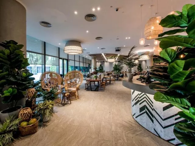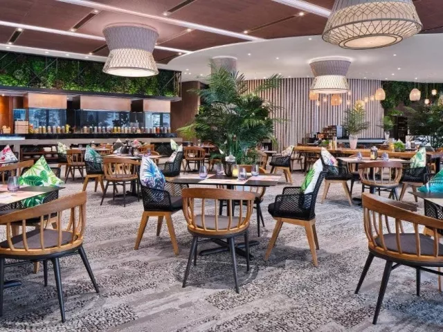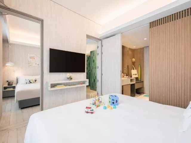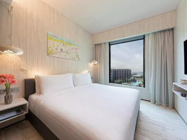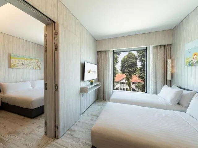Village Hotel Sentosa, ako najnovší prírastok značky Far East Hospitality, poskytuje jedinečný zážitok pre tých, ktorí hľadajú odpočinok a zároveň možnosť objavovať bohatú kultúru ostrova. Hotel je vhodný ako pre páry, tak aj pre rodiny s deťmi. Ponúka celkovo 606 moderne zariadených izieb, nepretržite otvorenú recepciu, 4 téme vonkajších bazénov, bar, zmenáreň, business centrum, výtahy, wellness a fitness centrum. K dispozícii je aj večerné premietanie filmov a bezplatné Wi-Fi vo všetkých priestoroch hotela.