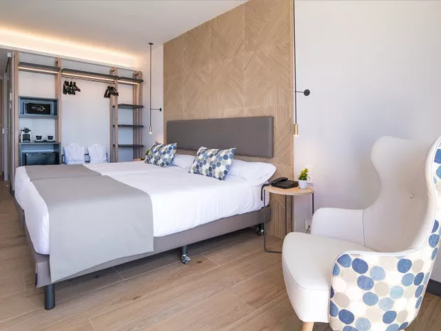 Izba typu Standard má približne 27 m² a je vybavená manželskou posteľou alebo dvoma samostatnými lôžkami, kúpeľňou so sprchou, televízorom, rozkladacou pohovkou, trezorom a setom na prípravu kávy/čaju, ako aj balkónom. Izba typu Superior má rovnaké vybavenie a terasu s čiastočným výhľadom na more. Izba typu Premium s bočným výhľadom na more ponúka rovnaké vybavenie, navyše župany v kúpeľni a bočný výhľad na more.