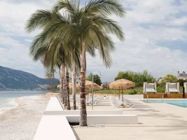 Piesočnato-okruhliaková pláž je priamo pri hoteli a vstup na ňu je možný z terasy pri bazéne.