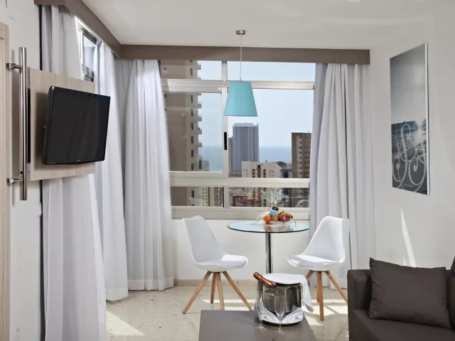 Junior Suites jsou vybaveny dvěma samostatnými lůžky, lounge s pohovkou, koupelnou se sprchou, fénem, klimatizací (v letních měsících), TV, trezorem (za poplatek), telefonem, terasou, WiFi (zdarma). Premium Suites mají stejné vybavení, navíc láhev sektu místní výroby.