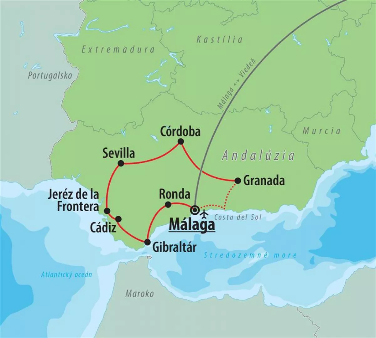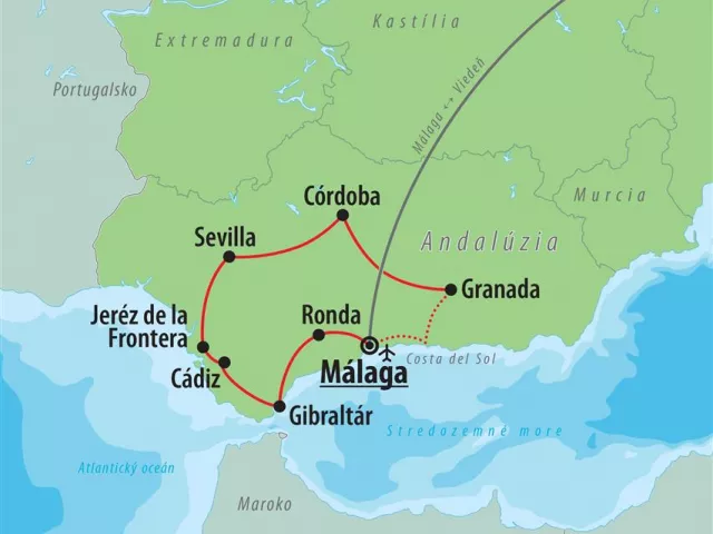 Andalúzia, jeden z najkrajších španielskych regiónov, vás očarí pompéznymi maurskými palácmi, tradičnou miestnou kuchyňou a slnečnými plážami. Počas pobytu sa môžete tešiť na širokú ponuku aktivít a výletov.