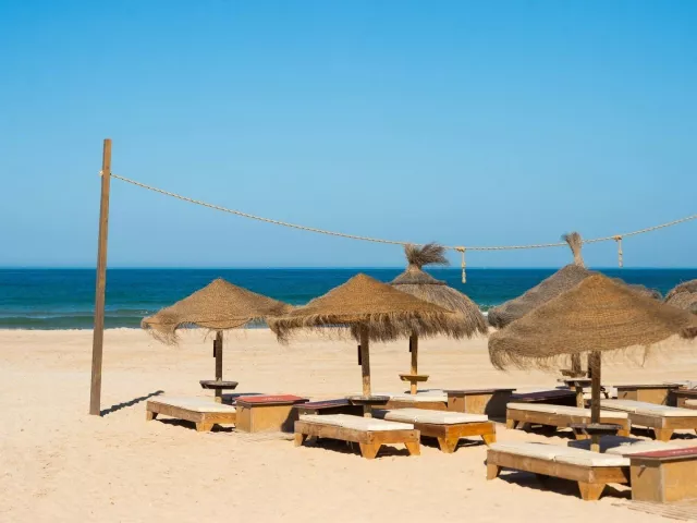 Piesočná pláž Playa La Barrosa sa nachádza priamo pred hotelom, ponúkajúca možnosti prenájmu ležadiel a slnečníkov za poplatok.