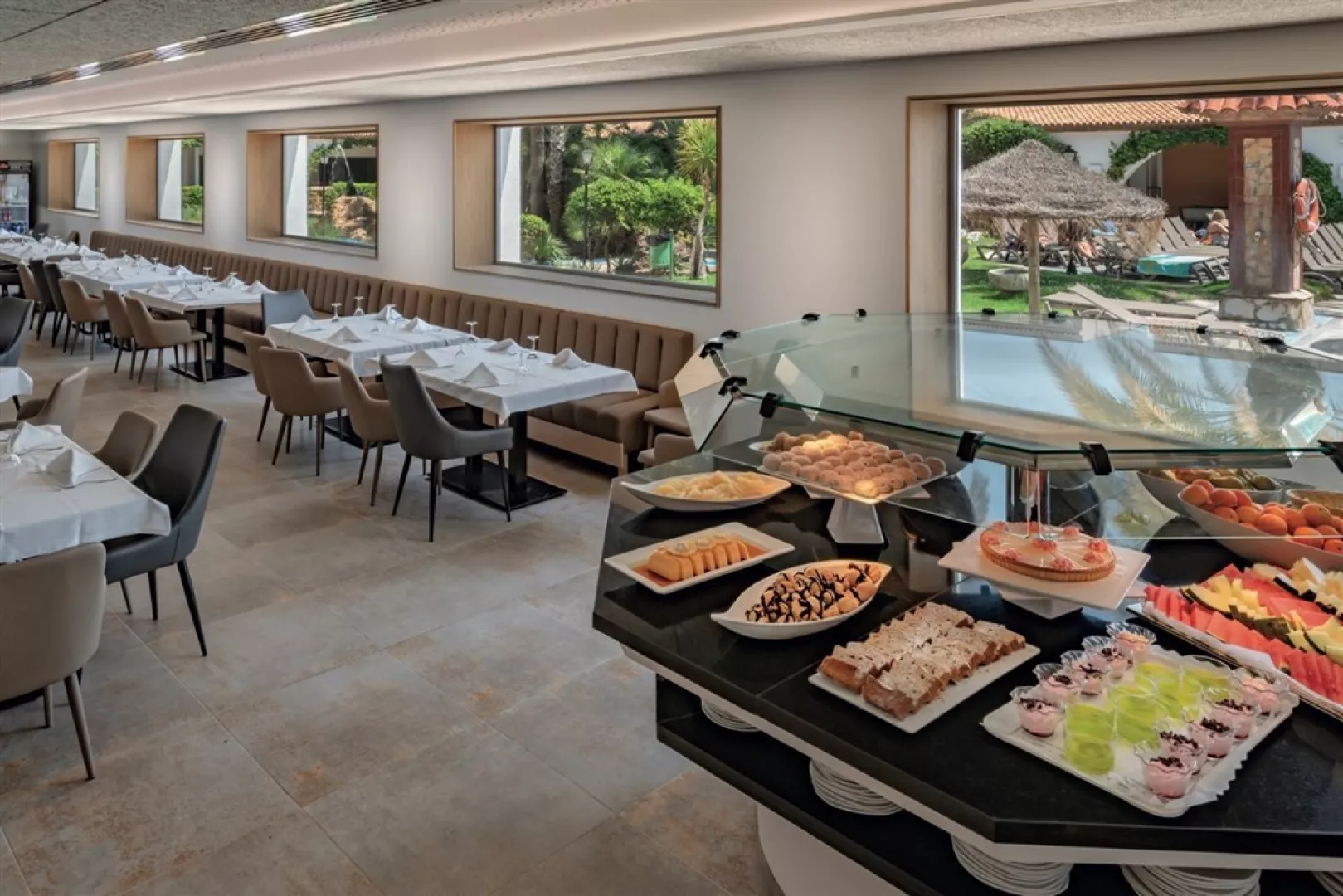 V hoteli sa nachádza reštaurácia, kde sa podávajú rôzne jedlá v rámci programu all inclusive. Hostia si môžu vychutnať pestrú škálu medzinárodnej kuchyne a regionálnych špecialít.