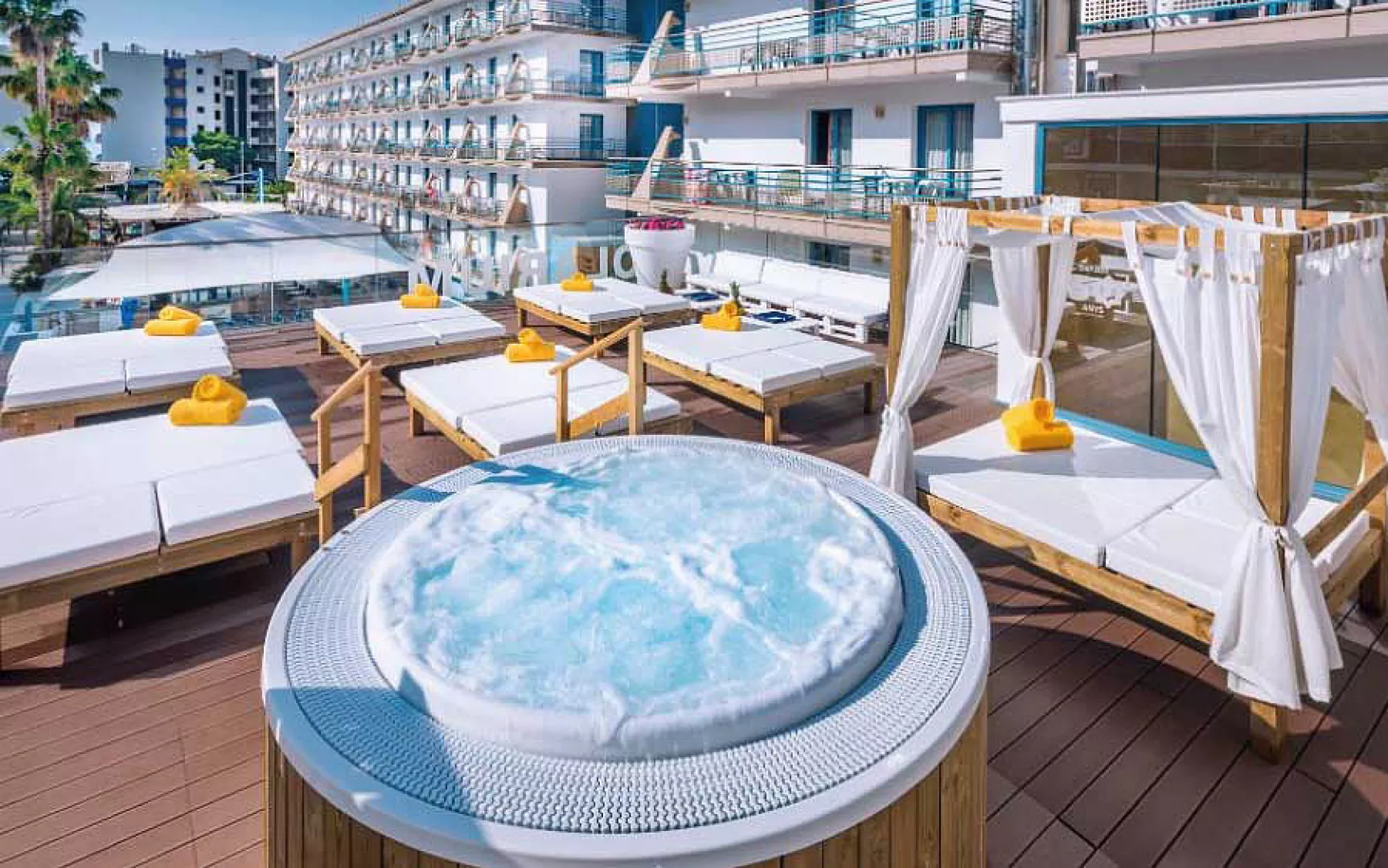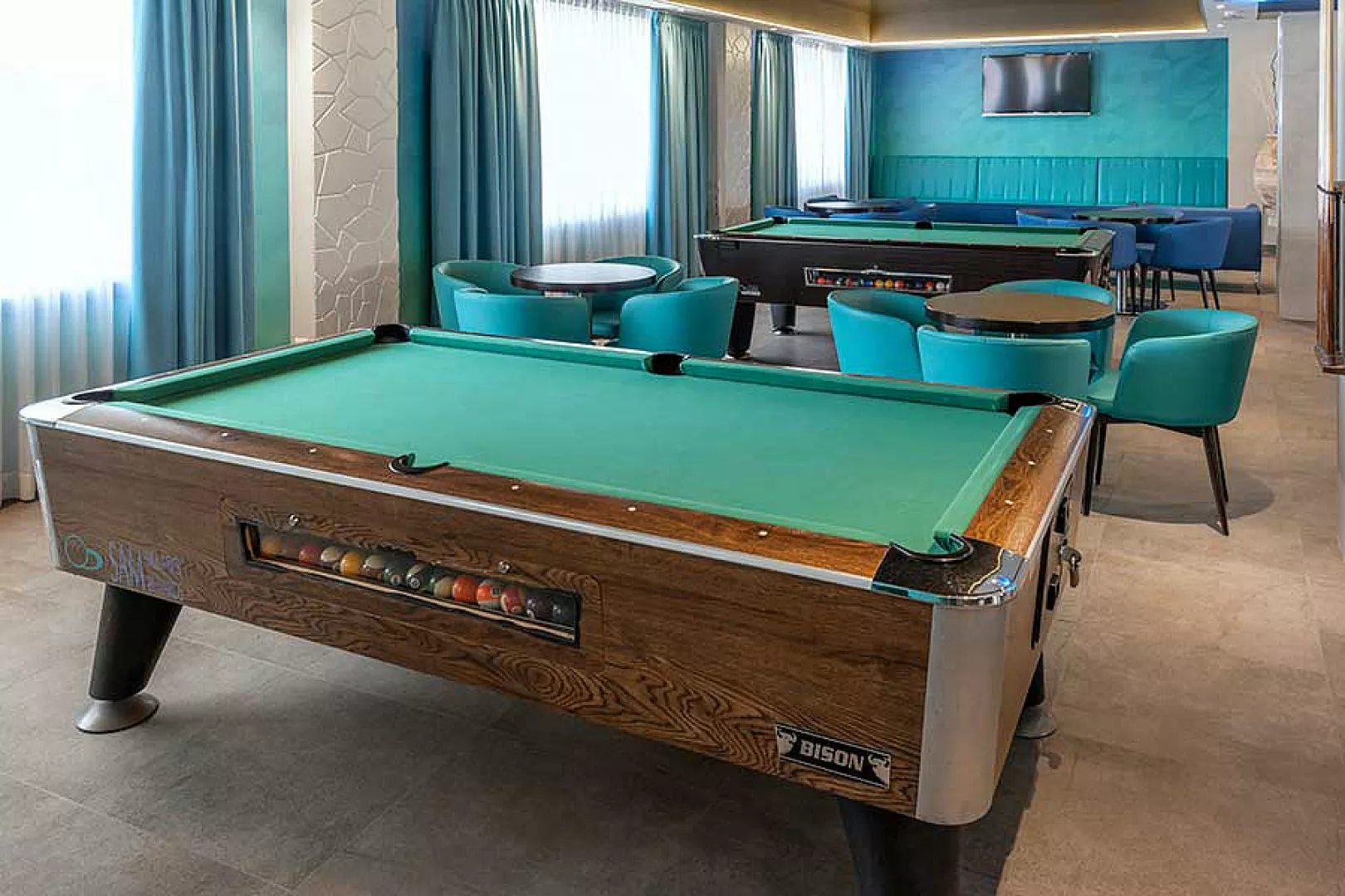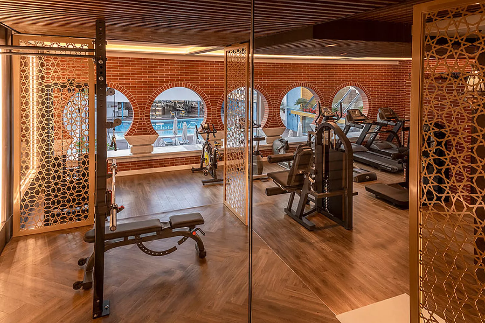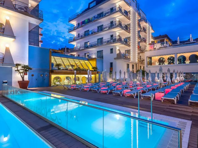 bazén s ležadlami a slnečníkmi, bar pri bazéne, detský bazénik, posilňovňa, stolný tenis*, biliard*, solárium*, sauna* * služby za príplatok