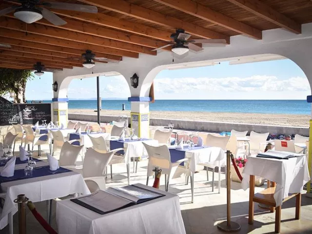 Pláž s hrubým pieskom a malými okruhliakmi je oddelená od hotela iba pešou promenádou. Lehátka a slnečníky sú k dispozícii za poplatok.