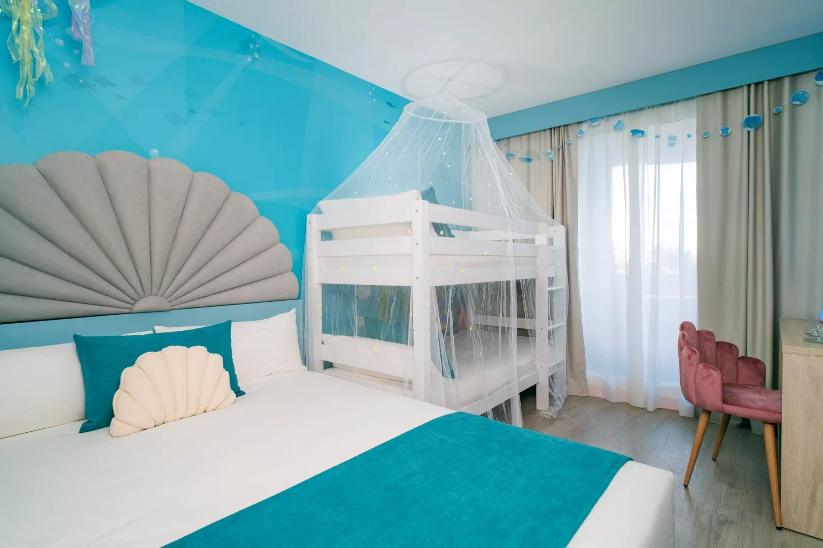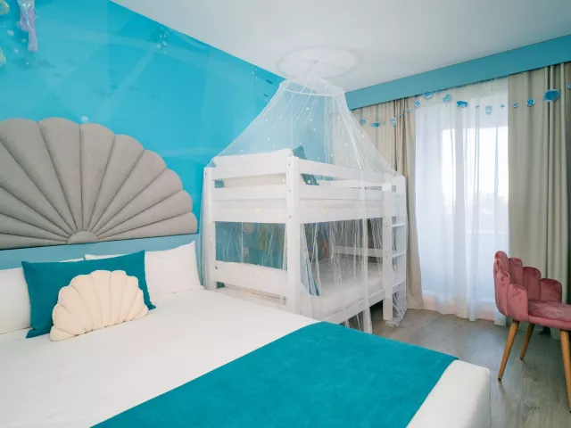 Vítajte v hoteli Magic Fantasy - mieste, kde ožívajú rozprávky! Zažite dovolenku plnú kúziel, smiechu a farieb v hoteli inšpirovanom svetom fantázie. Čakajú na vás tematické izby s dúhovými motívmi, morské panny, odvážni piráti a čarovné kráľovstvo, ktoré poteší malých aj veľkých. Vo vodnom svete Magic Splash Adventure so šmykľavkami a toboganmi si vodnú zábavu užijú aj tí najmenší. Zatiaľ čo rodičia si môžu dopriať romantické chvíle v chill-out bare na streche s čarovným výhľadom na more. A keď vás prepadne hlad, zamierte do reštaurácie v námorníckom štýle, kde sa svet fantázie stretáva s chuťou dobrodružstva. Magic Fantasy - dovolenka, ktorá má svoje vlastné kúzlo.