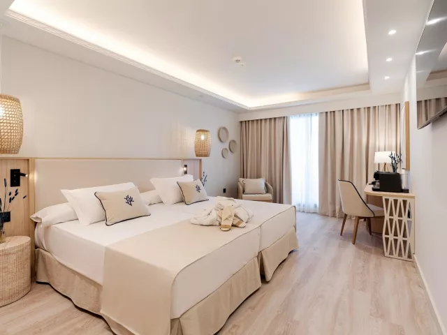 Novo zrekonštruovaný hotel v stredomorskom štýle, kde sa moderný komfort snúbi s autentickou atmosférou. Vychutnajte si jedinečné thalasso centrum s vnútornými a vonkajšími priestormi, zábavný vodný svet pre deti, tínedžerov a dospelých a nechajte sa rozmaznávať chuťami španielskej kuchyne pripravovanej z čerstvých organických surovín. Pre náročnejších hostí sú v rezorte Magic World k dispozícii izby Premium s nadštandardnými službami.