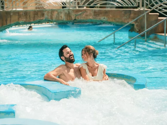 voľný vstup do Pontiana Mediterraneo Thalasso bezplatný vonkajší a vnútorný bazén s masážnymi tryskami a vírivkou masáže za poplatok