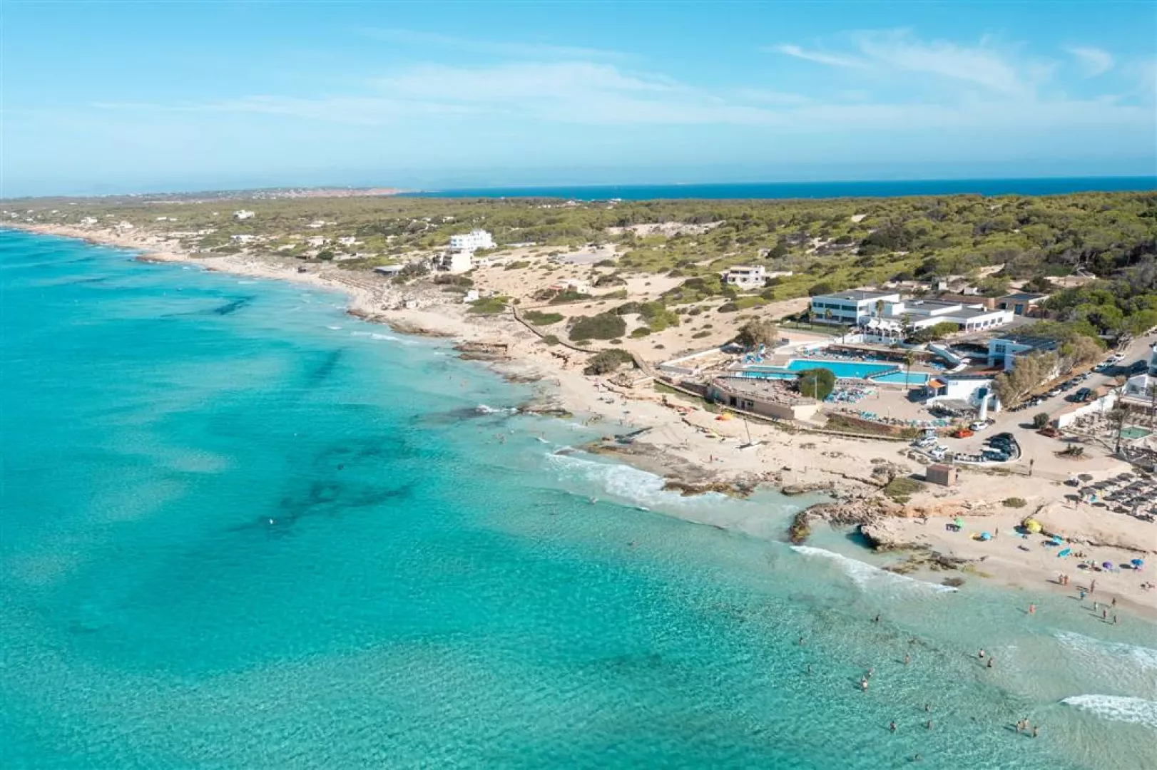 Krásna piesková pláž Playa Migjorn, obklopená píniovým lesom, ponúka pozvoľný vstup do mora. K dispozícii je tiež plážový servis a centrum vodných športov, ktoré sú za poplatok.