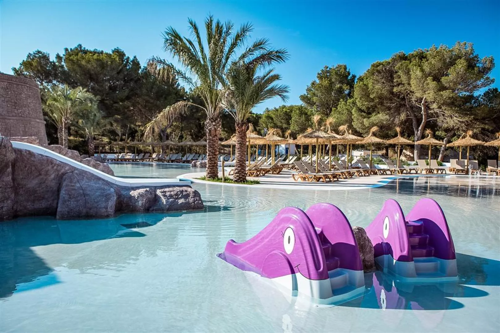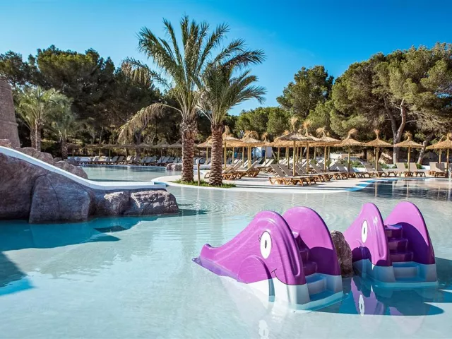 Hotel je dostupný z letiska na Ibize trajektom, ktorý trvá približne 30 minút. V areáli sa nachádzajú: