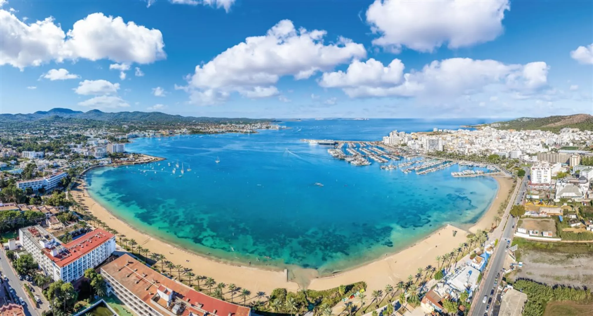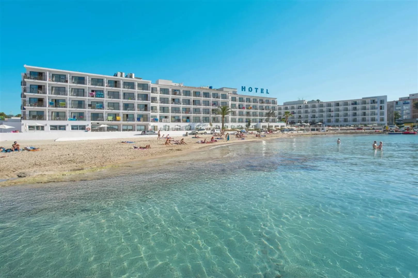 Hotely ležia vedľa seba na západnom pobreží ostrova, priamo pri piesočnatej pláži, len asi 2 km od letoviska San Antonio de Portmany. V okolí sa nachádzajú obchodíky, bary, kaviarne, reštaurácie a zábavné podniky. Letisko je vzdialené 18 km a známe chill-out miesta ako CAFE DEL MAR a café MAMBO sú len 3 km od hotela.