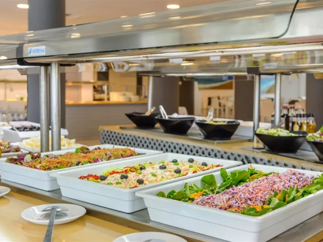 Stravovanie je zabezpečené formou all inclusive, ktoré zahŕňa raňajky, obedy a večere vo forme švédskych stolov vrátane nápojov. Počas dňa sú k dispozícii rôzne druhy snackov a občerstvenia, ako sendviče, hamburgery a cestoviny. Nechýbajú čapované pivo, nealkoholické a alkoholické nápoje, ako aj miešané nápoje.