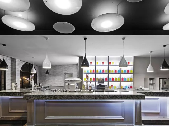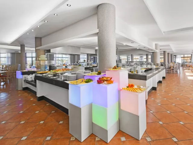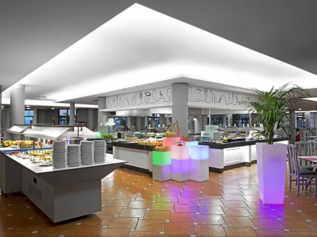 • Bufetová reštaurácia Na raňajky ponúka hotelová reštaurácia čerstvý a pestrý výber ovocia, pečiva, údenín, mäsových pochúťok, ako aj iných teplých a studených jedál, formou švédskych stolov. Na večeru si môžete vybrať z miestnych a medzinárodných jedál, niektoré z nich sú pripravované v rámci zážitkovej kuchyne a očakávať môžete aj tematické večery. Dress code: počas večere by ste sa mali vyhnúť plavkám, páni šortkám a vrchnému oblečeniu bez rukávov. • Snack bar Bar pri bazéne ponúka sendviče a ľahšie občerstvenie, aby ste si aj počas opaľovania mohli dopriať nejakú pochúťku.