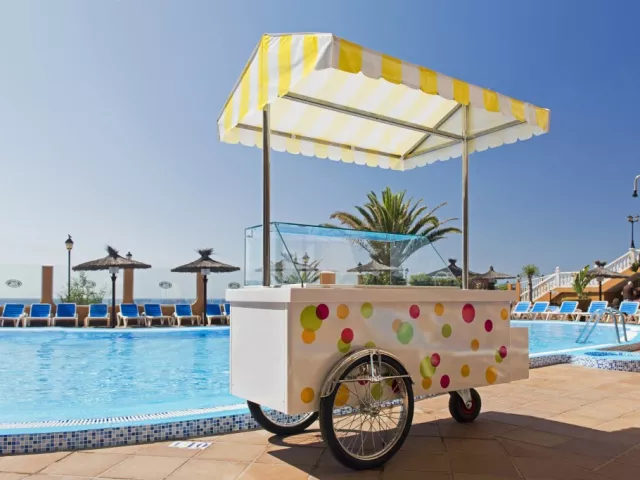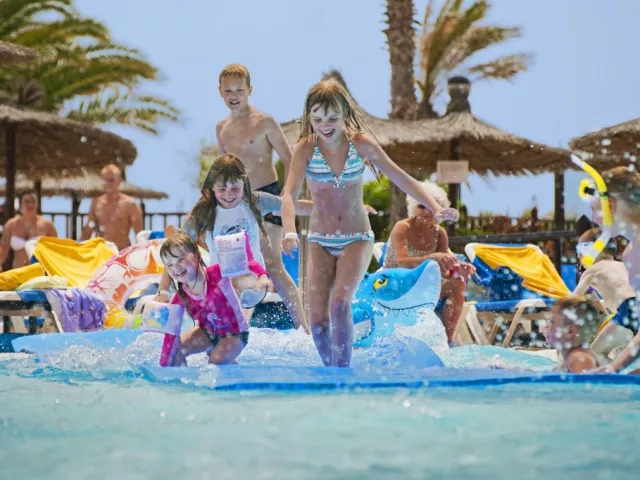 • bezplatné Wi-Fi pripojenie na internet, • slnečná terasa s ležadlami a slnečníkmi, • 2 bazény pre dospelých (1 vyhrievaný v zime), • detský bazén, • úschovňa batožiny, • denné a večerné animačné programy, • detské ihrisko, • miniklub, • práčovňa (za poplatok), • obchody v areáli ubytovania, • stolný tenis, • biliard