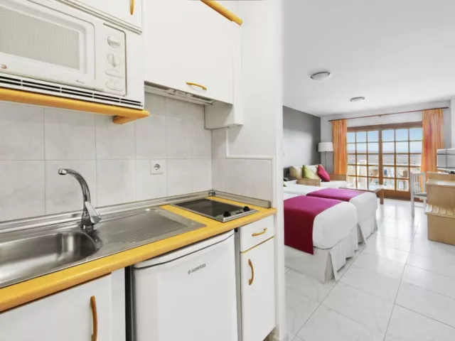 Štúdiá a apartmány sú pohodlné, svetlé a nájdete v nich všetko, čo potrebujete pre bezstarostný odpočinok. Nech už si vyberiete ktorýkoľvek typ, určite Vám bude k dispozícii Wi-Fi pripojenie, satelitná televízia a vybavená kuchynka. Rovnako ako balkón alebo terasa, z ktorých niektoré majú nádherný výhľad na Atlantický oceán (za príplatok).