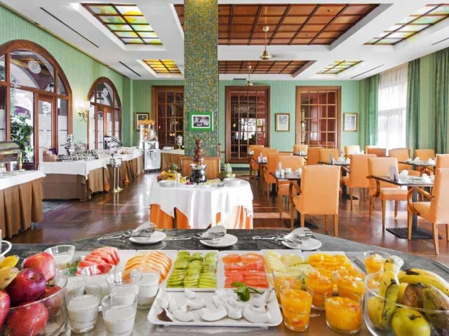 Hotel Elba Palace Golf and Vital venuje osobitnú pozornosť gastronómii, a preto počas Vašej dovolenky ponúka pestré, kvalitné jedlá a programy, medzi ktoré patria: miestne špeciality (ryby, kanárske syry, tradičné kanárske jedlá), tematické večere a ochutnávky španielskych vín. • Reštaurácia St Andrews À la carte a bufetová reštaurácia s nádherným výhľadom na golfové ihrisko a záhradu. Na terase a vnútornom priestore, ktoré sú v kanárskom štýle, Vás privíta živá hudba a dvakrát týždenne aj tematická večera. Súčasťou reštaurácie je aj kútik Vital Cuisine, kde si môžete vybrať zo zdravých a výživných jedál. • Kaviareň Hoyo 19 Menej formálna reštaurácia, ktorá tiež ponúka nádherné výhľady na golfové ihrisko, more a krajinu. Tapas, ľahké občerstvenie, šaláty, cestoviny, ryžové jedlá a široký výber kanárskych jedál ponúka kedykoľvek počas dňa. • La Bodega V tejto pôsobivej vínnej pivnici môžete ochutnať viac ako 300 druhov vín a 1000 druhov brandy. Oblečenie: na večeru v à la carte reštaurácii sa očakáva elegantnejšie oblečenie, u mužov košeľa a dlhé nohavice.