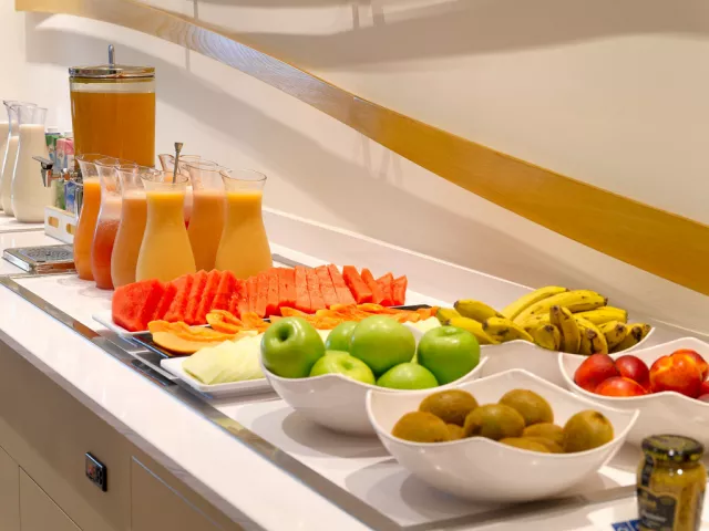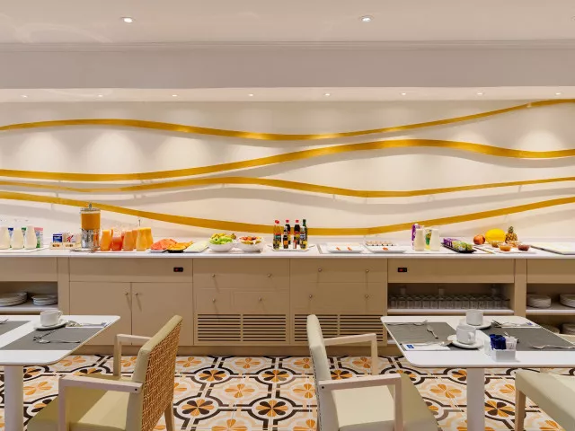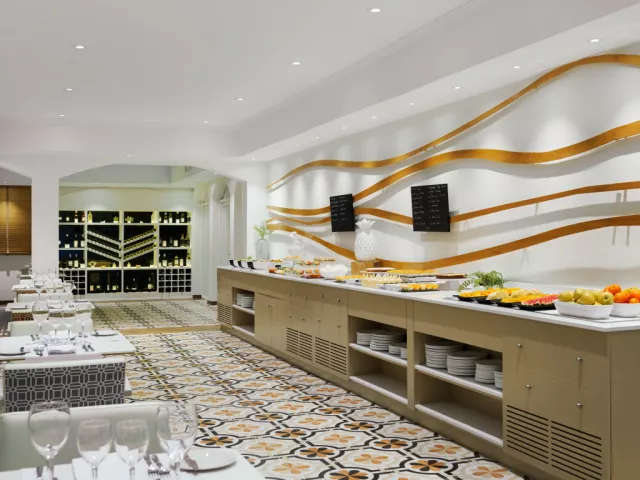 • La Oliva Reštaurácia La Oliva Vás privíta priestrannými a svetlými miestnosťami, v ktorých máte možnosť ochutnať moderné a vysokokvalitné jedlá. V reštaurácii sa podávajú raňajky formou švédskych stolov a ľahké sezónne jedlá na obed. Na večeru si môžete vybrať predjedlá zo švédskych stolov a hlavné jedlá z jedálneho lístka. Reštaurácia disponuje veľmi príjemnou terasou. • Velvet Bar Koktejlový bar s intímnou atmosférou je ideálnym miestom pre čítanie a rozhovory. Bazén je prístupný priamo z terasy. • Bar pri bazéne La Terasse Pri bazéne si môžete vychutnať ľahké občerstvenie a nápoje.