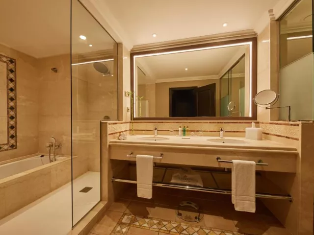 • Junior suita Rozloha suity: 42 m2 Výhľad: záhrada alebo mesto Vybavenie: Wi-Fi, bezplatné toaletné potreby, župan, vaňa alebo sprchovací kút. uteráky, papuče, sušič na vlasy, dezinfekcia na ruky, kávovar, klimatizácia, trezor, ventilátor, kávovar, rýchlovarná kanvica, TV, telefón, satelitné programy, TV s plochou obrazovkou, balkón, zásuvka pri posteli • Junior suita s výhľadom na bazén: Rozloha suity: 42 m2, Výhľad: bazén. Vybavenie: Wi-Fi, bezplatné toaletné potreby, župan, vaňa alebo sprchovací kút. uteráky, papuče, sušič na vlasy, dezinfekcia na ruky, kávovar, klimatizácia, trezor, ventilátor, kávovar, rýchlovarná kanvica, TV, telefón, satelitné programy, TV s plochou obrazovkou, balkón, zásuvka pri posteli. • Suita Junior s bočným výhľadom na oceán: Rozloha suity: 42 m2, Výhľad: oceán zboku. Vybavenie: Wi-Fi, bezplatné toaletné potreby, župan, vaňa alebo sprchovací kút. uteráky, papuče, sušič na vlasy, dezinfekcia na ruky, kávovar, klimatizácia, trezor, ventilátor, kávovar, rýchlovarná kanvica, TV, telefón, satelitné programy, TV s plochou obrazovkou, balkón, zásuvka pri posteli. • Suita Junior s výhľadom na oceán: Rozloha suity: 42 m2, Výhľad: oceán. Vybavenie: Wi-Fi, bezplatné toaletné potreby, župan, vaňa alebo sprchovací kút. uteráky, papuče, sušič na vlasy, dezinfekcia na ruky, kávovar, klimatizácia, trezor, ventilátor, kávovar, rýchlovarná kanvica, TV, telefón, satelitné programy, TV s plochou obrazovkou, balkón, zásuvka pri posteli. • Suita Deluxe Junior s výhľadom do záhrady: Rozloha suity: 42 m2, Výhľad: záhrada. Vybavenie: Wi-Fi, bezplatné toaletné potreby, župan, vaňa alebo sprchovací kút. uteráky, papuče, sušič na vlasy, dezinfekcia na ruky, kávovar, klimatizácia, trezor, ventilátor, kávovar, rýchlovarná kanvica, TV, telefón, satelitné programy, TV s plochou obrazovkou, balkón, zásuvka pri posteli. • Suita Deluxe Junior s výhľadom na oceán: Rozloha suity: 47 m2, Výhľad: oceán. Vybavenie: Wi-Fi, bezplatné toaletné potreby, župan, vaňa alebo sprchovací kút. uteráky, papuče, sušič na vlasy, dezinfekcia na ruky, kávovar, klimatizácia, trezor, ventilátor, kávovar, rýchlovarná kanvica, TV, telefón, satelitné programy, TV s plochou obrazovkou, balkón, zásuvka pri posteli. • Grand Junior Suita Deluxe s výhľadom na oceán: Rozloha suity: 48 m2, Výhľad: oceán. Vybavenie: Wi-Fi, bezplatné toaletné potreby, župan, vaňa alebo sprchovací kút. uteráky, papuče, sušič na vlasy, dezinfekcia na ruky, kávovar, klimatizácia, trezor, ventilátor, kávovar, rýchlovarná kanvica, TV, telefón, satelitné programy, TV s plochou obrazovkou, balkón, zásuvka pri posteli. • Suita Preferred Club Junior s výhľadom na oceán: Rozloha suity: 36 m2, Výhľad: oceán. Vybavenie: Wi-Fi, bezplatné toaletné potreby, župan, vaňa alebo sprchovací kút. uteráky, papuče, sušič na vlasy, dezinfekcia na ruky, kávovar, klimatizácia, trezor, ventilátor, kávovar, rýchlovarná kanvica, TV, telefón, satelitné programy, TV s plochou obrazovkou, balkón, zásuvka pri posteli. Extra služby: minibar na izbe s nealkoholickými nápojmi a pivom, tablety v izbách Preferred Club, kapsulový kávovar, nadštandardná kúpeľňová súprava, vankúšové menu, personalizovaná registrácia a odhlásenie, exkluzívna služba concierge, služby komorníka v časti Preferred Club , kontinentálne raňajky každý deň v salóniku Exclusive, popoludňajšie občerstvenie v salóniku Exclusive, bezplatné používanie počítača v salóniku Exclusive. • Suita Preferred Club Deluxe Junior s výhľadom na oceán: Rozloha suity: 36 m2, Výhľad: oceán. Vybavenie: Wi-Fi, bezplatné toaletné potreby, župan, vaňa alebo sprchovací kút. uteráky, papuče, sušič na vlasy, dezinfekcia na ruky, kávovar, klimatizácia, trezor, ventilátor, kávovar, rýchlovarná kanvica, TV, telefón, satelitné programy, TV s plochou obrazovkou, balkón, zásuvka pri posteli. Extra služby: minibar na izbe s nealkoholickými nápojmi a pivom, tablety v izbách Preferred Club, kapsulový kávovar, nadštandardná kúpeľňová súprava, vankúšové menu, personalizovaná registrácia a odhlásenie, exkluzívna služba concierge, služby komorníka v časti Preferred Club , kontinentálne raňajky každý deň v salóniku Exclusive, popoludňajšie občerstvenie v salóniku Exclusive, bezplatné používanie počítača v salóniku Exclusive. • Suita Preferred Club s výhľadom na oceán: Rozloha suity: 74 m2 Výhľad: oceán Vybavenie: Wi-Fi, bezplatné toaletné potreby, župan, vaňa alebo sprchovací kút. uteráky, papuče, sušič na vlasy, dezinfekcia na ruky, kávovar, klimatizácia, trezor, ventilátor, kávovar, rýchlovarná kanvica, TV, telefón, satelitné programy, TV s plochou obrazovkou, balkón, zásuvka pri posteli. Extra služby: minibar na izbe s nealkoholickými nápojmi a pivom, kapsulový kávovar, nadštandardná kúpeľňová súprava, vankúšové menu, personalizovaná registrácia a odhlásenie, exkluzívna služba concierge, služby komorníka v časti Preferred Club , kontinentálne raňajky každý deň v salóniku Exclusive, popoludňajšie občerstvenie v salóniku Exclusive, bezplatné používanie počítača v salóniku Exclusive.
