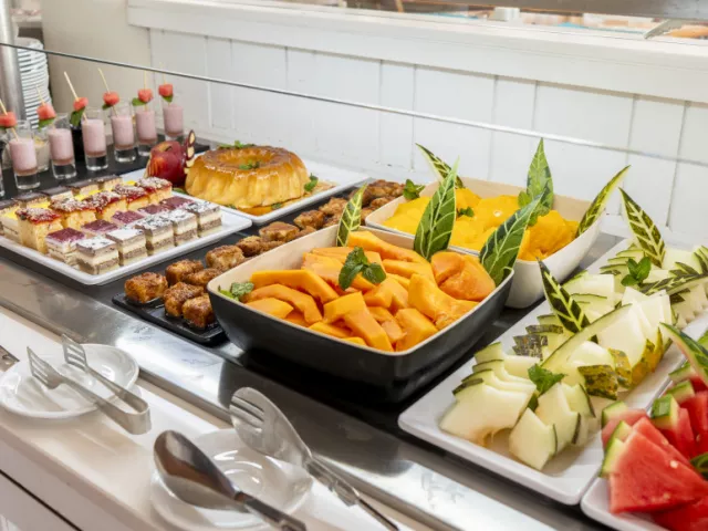 Ubytovacie zariadenie ponúka raňajky a večere formou bufetu. V bare pri bazéne sa podáva obed à la carte.