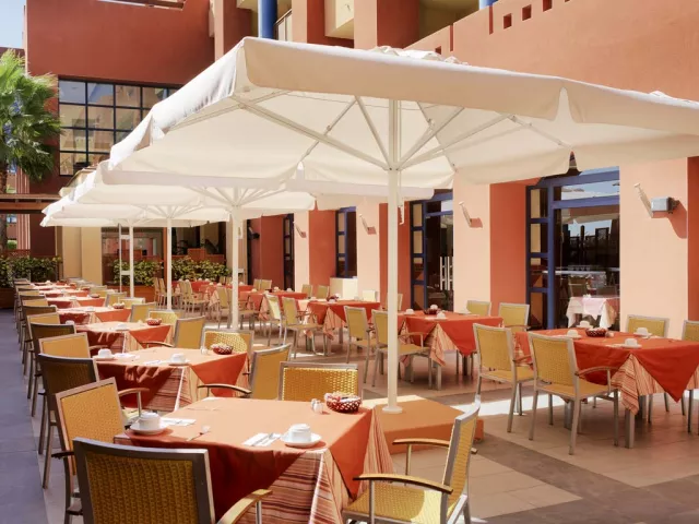 Betancuria Raňajky, obedy a večere formou bufetu v hlavnej hotelovej reštaurácii. Ak si vyberiete All Inclusive, môžete vyskúšať aj exkluzívny zážitok „super brunch“. Reštaurácia má aj terasu a pozýva Vás do zážitkovej kuchyne. Dress code: vstup v plavkách alebo bez vrchného oblečenia nie je povolený. Route 66 Á la carte reštaurácia, ktorej atmosféra pripomína Ameriku 50. a 60. rokov. Hlavným profilom reštaurácie sú mäsové jedlá a grilovanie. Pri pobyte na minimálne 6 nocí si môžete objednať bezplatné jedlo v reštaurácii. Dress code: vstup v plavkách alebo bez vrchného oblečenia nie je povolený. Mike's Coffee Ak chcete dobrú kávu a domáce koláče, nabštívte toto miesto. Nájdete tu aj široký výber čajov, smoothies a mliečnych koktailov. La Choza Bar Bar s malým občerstvením pri bazéne. Herbania Bar Vo vstupnej hale nájdete tento bar s príjemnou atmosférou, širokým výberom nápojov a koktailov. Bar má aj terasu s nádherným výhľadom na oceán. Tarajal Ballroom Skvelé miesto, ak máte chuť tancovať. Večerné predstavenia a minidiskotéka Daisy pre najmenších.