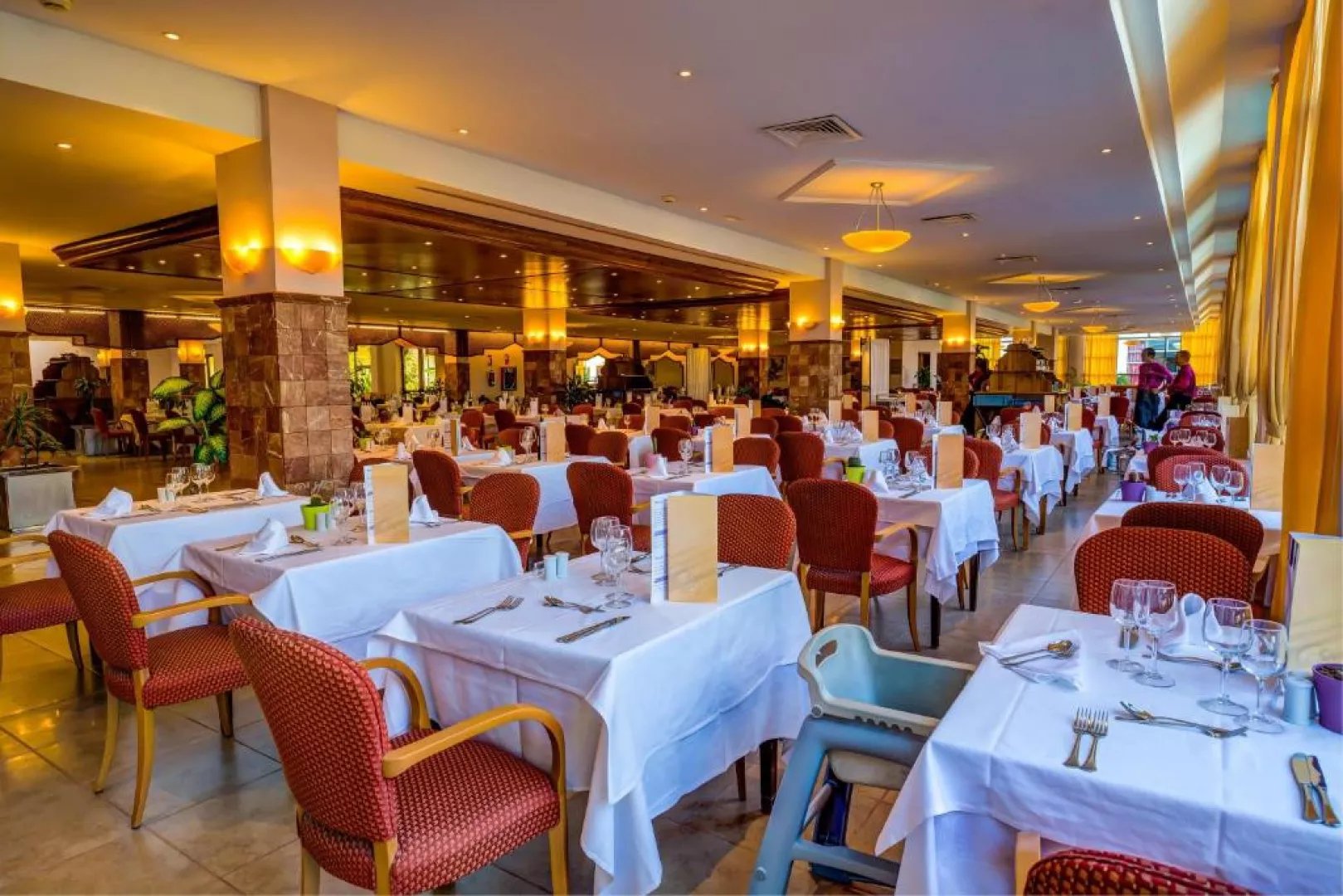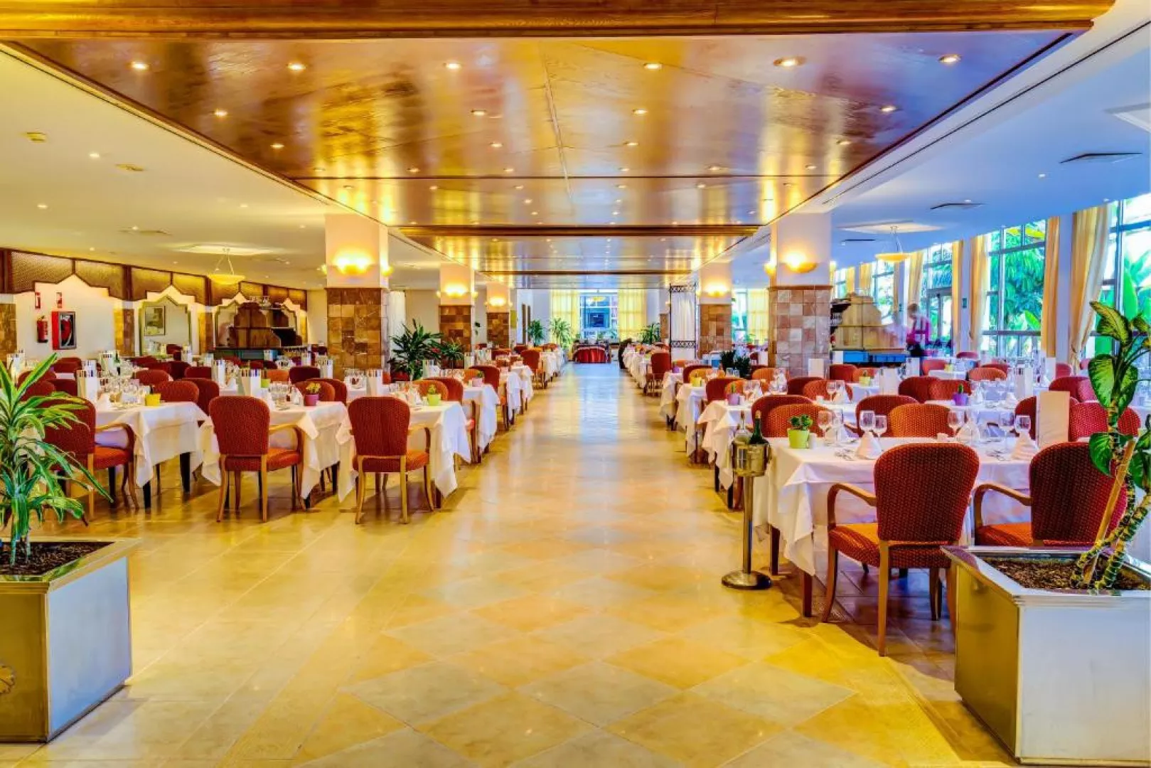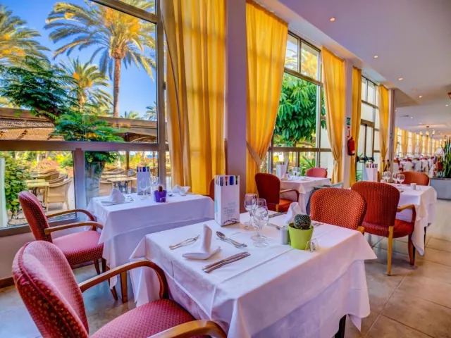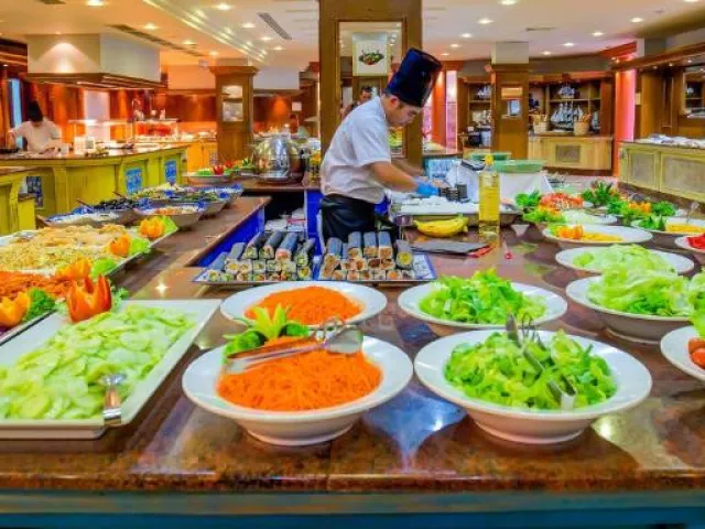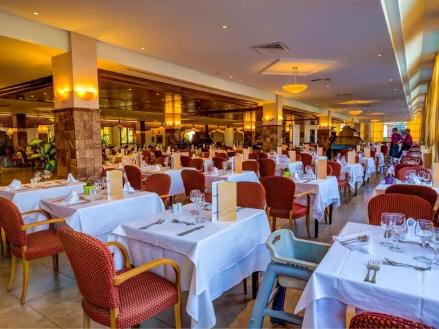 • Hlavná reštaurácia: môžete ochutnať prepychové jedlá, ktoré sa denne menia na raňajky, obed a večeru. • Bar pri bazéne: osviežte sa počas dňa v bare pri bazéne, kde na vás čakajú ľahké jedlá a lahodné nápoje. • Lobby bar: v hlavnej budove hotela sa nachádza bar s atmosférou, kde sa tiež večer konajú rôzne predstavenia. • Piano Bar