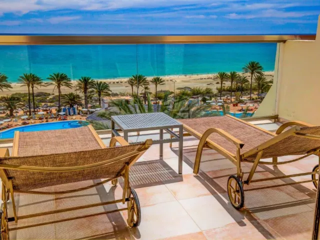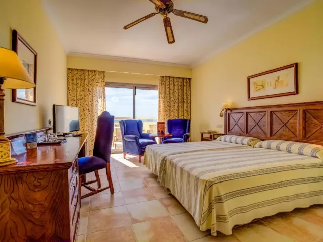 • Izba s bočným výhľadom na oceán: Klimatizované izby majú balkón alebo terasu s výhľadom na oceán. V ubytovacej jednotke je k dispozícii satelitná TV, písací stôl a možno si prenajať aj trezor. Rozloha izby: 36 m2 Výhľad: bočný na oceán Vybavenie: klimatizácia, trezor, ventilátor, písací stôl, telefón, satelitné programy, TV s plochou obrazovkou, balkón, terasa. • Izba s výhľadom na oceán: Klimatizované izby majú balkón alebo terasu s výhľadom na oceán. V izbách je k dispozícii satelitná TV, písací stôl a možno si prenajať aj trezor. Rozloha izby: 36 m2 Výhľad: oceán Vybavenie: klimatizácia, trezor, ventilátor, písací stôl, telefón, satelitné programy, TV s plochou obrazovkou, balkón, terasa. • Izba Superior s výhľadom na oceán: Dvojlôžková izba Superior s výhľadom na oceán. Izby Superior s výhľadom na oceán kombinujú krásny výhľad na pláž Costa Calma, s elegantným, pohodlným nábytkom a príjemným dizajnom. Tieto izby sa nachádzajú na 3. a 7. poschodí a ponúkajú privilegovaný výhľad. V izbách je k dispozícii satelitná TV , písací stôl a možno si prenajať aj trezor. Rozloha izby: 36 m2 Výhľad: oceán Vybavenie: klimatizácia, trezor, ventilátor, písací stôl, telefón, satelitné programy, TV s plochou obrazovkou, balkón, terasa. • Economy izba s výhľadom na oceán - Economy: Tieto izby majú elegantne zariadené priestranné izby s vlastným balkónom. Môžu sa v nej ubytovať maximálne 2 dospelí a dieťa do 2 rokov. Na požiadanie hotel poskytuje detské postieľky. Rozloha: 36 m2 Výhľad: oceán Vybavenie: Všetky izby sú vybavené vlastným balkónom alebo terasou, TV, telefónom s priamou voľbou, chladničkou, trezorom (za poplatok), WI-FI (za poplatok), klimatizáciou. V kúpeľni nájdete toaletné potreby, sušič vlasov a zväčšovacie zrkadlo. • Suita s výhľadom na oceán: Apartmány majú oddelenú spálňu a obývaciu izbu, tiež veľkú terasu s krásnym výhľadom na pláž Costa Calma. Všetky izby majú balkón alebo terasu, SAT TV, chladničku, trezor, Wi-Fi (za príplatok), klimatizáciu a plne vybavenú kúpeľňu vrátane fénu a zväčšovacieho zrkadla. • Suita Superior s výhľadom na oceán: Apartmány majú oddelenú spálňu a obývaciu izbu, tiež veľkú terasu s krásnym výhľadom na pláž Costa Calma. Všetky izby majú balkón alebo terasu, SAT TV, chladničku, trezor, Wi-Fi (za príplatok), klimatizáciu a plne vybavenú kúpeľňu vrátane fénu a zväčšovacieho zrkadla. • Suita Junior: Priestranný apartmán Junior má balkón s výhľadom na oceán. Všetky izby majú samostatnú spoločenskú miestnosť, SAT TV, telefón a vlastnú kúpeľňu so sušičom vlasov. Za príplatok je k dispozícii aj Wi-Fi a trezor. Rozloha apartmánu: 49 m2 Kapacita: max. 3 osoby Vybavenie: klimatizácia, trezor, ventilátor, písací stôl, telefón, satelitné programy, TV s plochou obrazovkou, balkón, terasa.