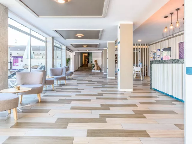 Hotel ponúka 24-hodinovú recepciu, niekoľko výťahov, hlavnú reštauráciu s cooking show a tri bary, vrátane baru pri bazéne. K dispozícii je slnečná terasa s bazénom, detským bazénom a bezplatným prístupom k ležadlám a slnečníkom pri bazéne. Internetové pripojenie je dostupné v celom hoteli bezplatne.