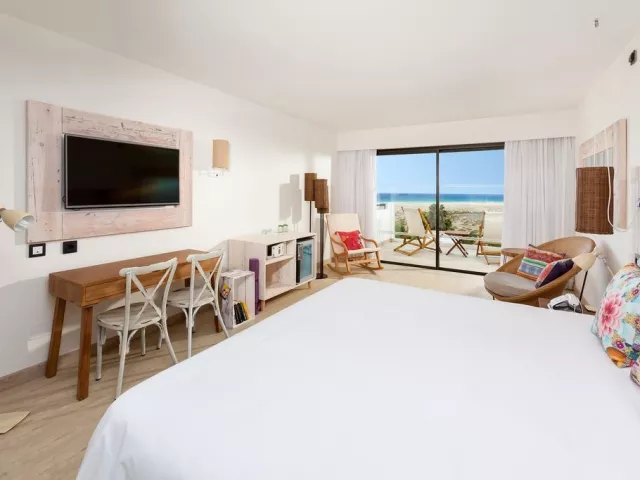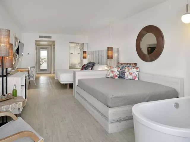• Suita XTRA Junior s výhľadom na oceán a do záhrady: Toto je skutočný plážový dom s vlastnou záhradou! Junior suita navodzuje atmosféru skutočného hausbótu, no vyznačuje sa elegantným a moderným dizajnom vytvoreným spoločnosťou Desigual Living. Izba ponúka nádherný výhľad na oceán. Terasa má vlastnú záhradu, kde si môžete vychutnať krásu subtropických rastlín. Vybavenie izby a služby: Televízor s plochou obrazovkou, Wi-Fi, Telefón, Klimatizácia, Trezor, Minibar (za príplatok), Fén, Podložka na YOGU, Toaletné potreby. Doplnkové služby XTRA junior suite s výhľadom na oceán a do záhrady: Bezplatný uvítací minibar, Bluetooth reproduktory, Kávovar Nespresso s vybranou kolekciou kávy, Župan, Bezplatná organická plážová taška a šľapky. • Suita Junior s výhľadom na oceán: Suita Junior sa vyznačuje elegantným a moderným dizajnom, ktorý sa vyznačuje štýlom Desigual Living. Izba ponúka nádherný výhľad na oceán. Vybavenie izby a služby: Televízor s plochou obrazovkou, Wi-Fi, Telefón, Klimatizácia, Trezor, Minibar (za príplatok), Fén, Podložka na YOGU, Toaletné potreby. • Suita Junior s výhľadom do záhrady a na oceán: Toto je skutočný plážový dom! Junior suita navodzuje atmosféru skutočného hausbótu, no vyznačuje sa elegantným a moderným dizajnom vytvoreným spoločnosťou Desigual Living. Izba ponúka nádherný výhľad na oceán. Terasa má spoločnú záhradu, kde si môžete vychutnať krásu subtropických rastlín. Vybavenie izby a služby: Televízot s plochou obrazovkou, Wi-Fi, Telefón, Klimatizácia, Trezor, Minibar (za príplatok), Fén, Podložka na YOGU, Toaletné potreby.