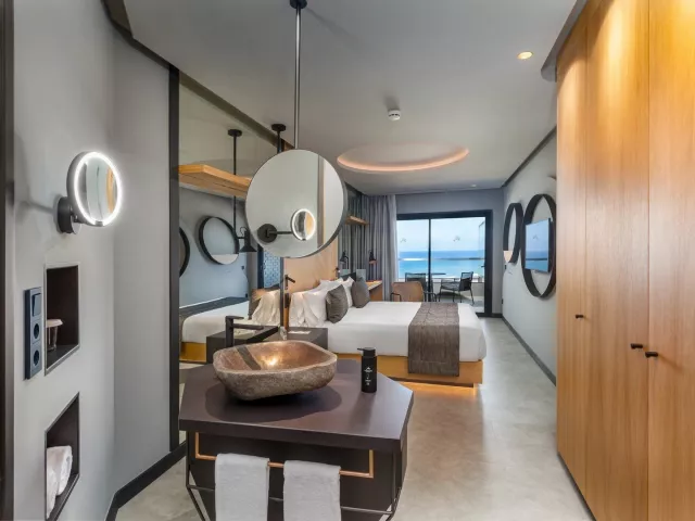 Izba Deluxe má cca 35 m², manželskú posteľ, kúpeľňu so sprchou alebo vaňou, WC, fén, toaletné potreby, TV, rýchlovarnú kanvicu, individuálne nastaviteľnú klimatizáciu, trezor, minibar (za poplatok), telefón a balkón s posedením. Izba Superior má rovnaké vybavenie, ale s čiastočným, bočným alebo úplným výhľadom na more. Junior Suite má cca 65 m² a rovnaké vybavenie ako izba Deluxe, navyše má pohovku.