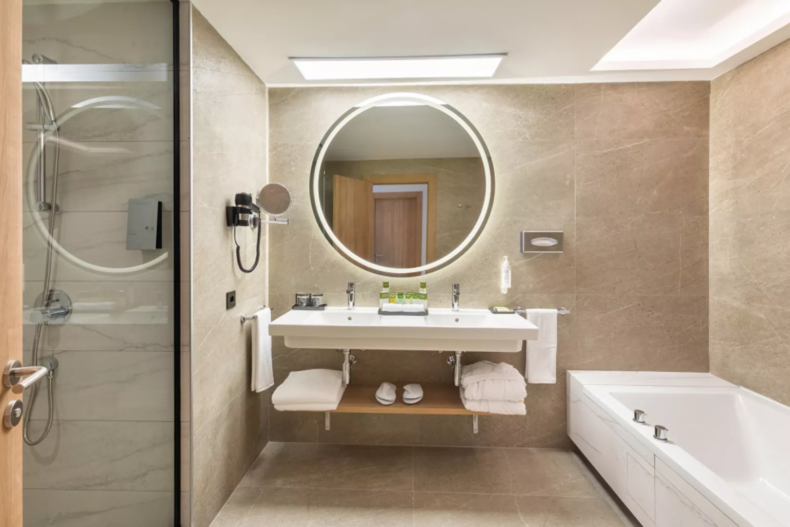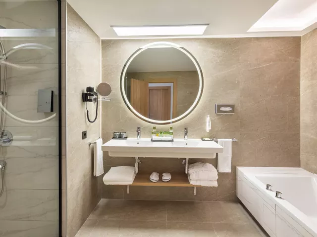 • 2 bazény (576/202 m²), oba vyhrievané v zime, • ležadlá, slnečníky, • plážové osušky, • balijské postele (pre hostí ubytovaných v Junior a Superior Junior apartmánoch), • wellness centrum s rôznymi kozmetickými procedúrami, kaderníctvom a masážami (za príplatok), • bezplatný parný kúpeľ, • obchody, butiky, • bezplatné Wi-Fi v celom hoteli