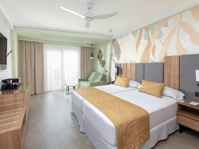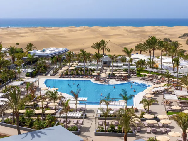 Riu Palace Maspalomas má viac ako 350 izieb, všetky sú vybavené klimatizáciou. Hotel ponúka ideálne miesto na vychutnanie si nádherného počasia na Kanárskych ostrovoch. V krásnych zelených záhradách si môžete vybrať z dvoch bazénov. Slnečná terasa je vybavená ležadlami, slnečníkmi a osviežujúcimi kokteilmi.