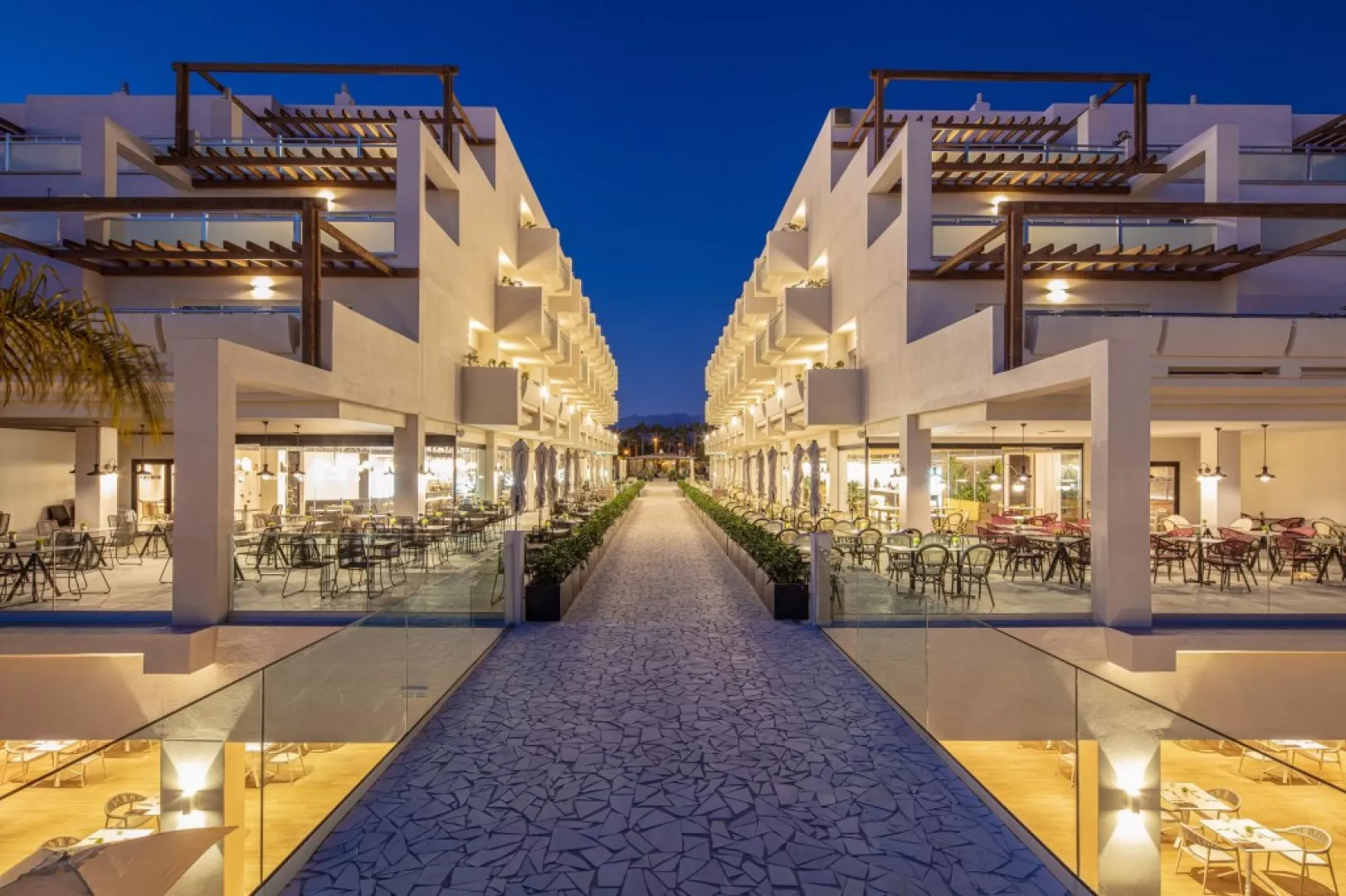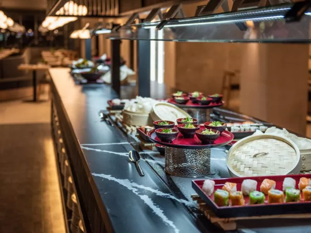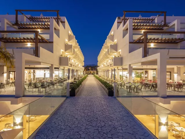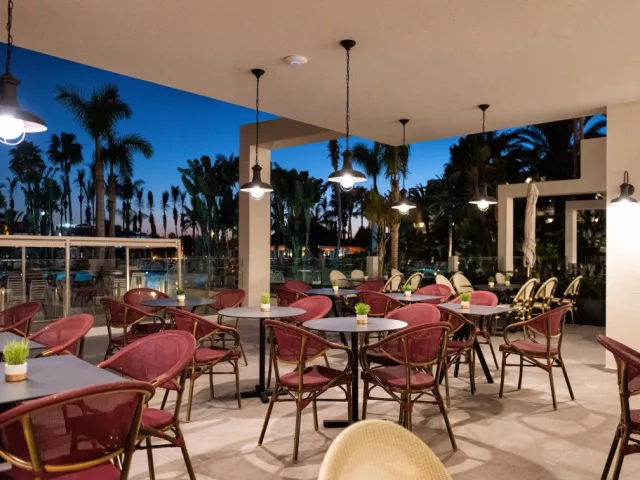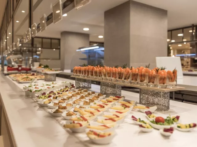V spoločnej reštaurácii oboch hotelov si môžete vybrať z lahodných miestnych a medzinárodných lahôdok, ktoré sú podávané formou švédskych stolov. Kulinársky zážitok sa ďalej znásobuje otvorenou kuchyňou a tematickými večerami niekoľkokrát týždenne. • Il Pecatto Bufetová reštaurácia zameraná na chute talianskej kuchyne. Nájdete tu všetko, čo k pravému talianskemu večeru patrí. Vyberte si jedlo podľa chuti, nápoje budú podávané pri Vašom stole. Rezervácia stola je nutná vopred. Pri rezervácii izby na minimálne 5 nocí je 1 večera na osobu zdarma. • Kokoro Hviezdami hotelovej ázijskej reštaurácie sú sushi špeciality, ktoré priamo na mieste pripravujú šéfkuchári reštaurácie. Vami vybranú večeru si môžete vychutnať aj na krytej terase. Rezervácia stola je nutná vopred. Pri rezervácii izby na minimálne 5 nocí je 1 večera na osobu zdarma. • La Choza Ak vstávate neskoro, v tejto útulnej reštaurácii si môžete dať neskoré raňajky. Môžete si tu vychutnať aj obed a olovrant. Keďže sa nachádza v blízkosti oddelení pre plnoletých, v ponuke nájdete aj zdravé jedlá špeciálne určené pre dospelých. • Mordisco Family Snack Reštaurácia sa nachádza hneď vedľa hlavného bazéna a vodného parku, vďaka čomu je ideálna pre rodinný obed. Pri tvorbe jedálneho lístka boli na prvom mieste jedlá podľa chuti najmenších hostí, takže tu budú Vaše deti určite spokojné. • Bary Dva hotely majú spolu 5 barov, ktoré sú roztrúsené po celom komplexe. V niektorých môžete ochutnať čajové a kávové špeciality, vypočuť si živú hudbu. Môžete si nájsť aj ostrovček pokoja určený len pre dospelých. Široký výber koktailov a iných chutných nápojov, toto všetko majú tieto bary spoločné! • Stánky s nápojmi a jedlom V noci je v predajných automatoch umiestnených v hoteli k dispozícii voda, káva, nealkoholické nápoje, rôzne sendviče a pečivo. Dress code: Muži musia mať na večeri dlhé nohavice. Na vianočných a silvestrovských galavečeroch sa mužom odporúčajú saká a kravaty, dámam elegantné šaty.