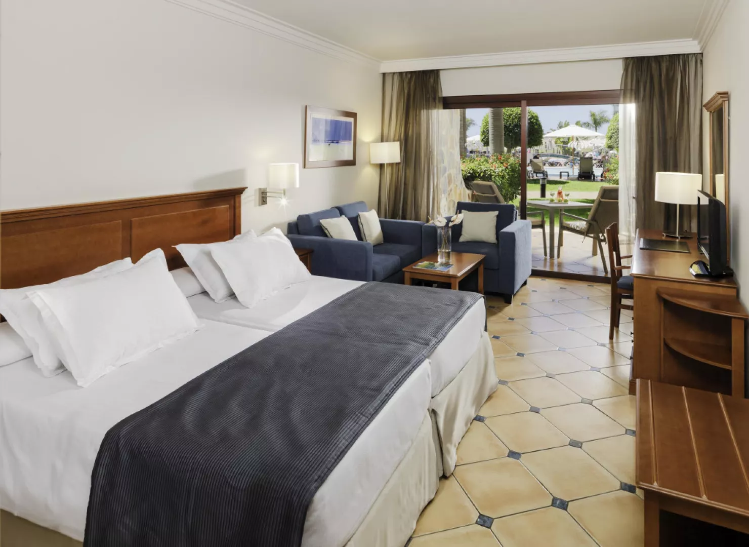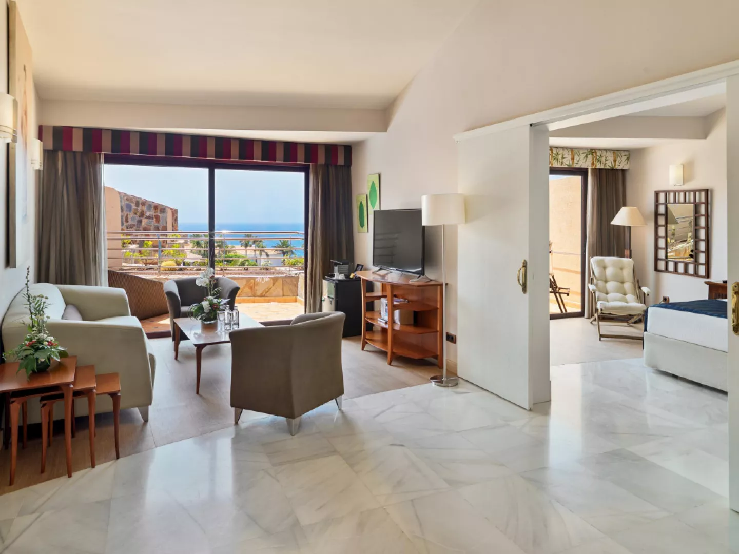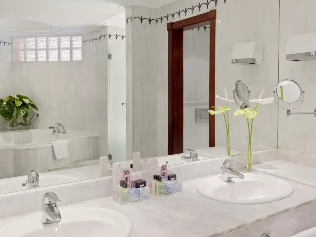 • Dvojlôžková izba: Na izbe je 1 manželská posteľ alebo 2 samostatné lôžka. Kúpeľňa je vybavená toaletnými potrebami a sušičom vlasov. Vybavenie izieb: Minibar, Klimatizácia/Kúrenie, Trezor, Žehlička, Stôl, Telefón, Satelitné programy, TV s plochou obrazovkou. • Dvojlôžková izba s výhľadom na oceán: Na izbe je 1 manželská posteľ alebo 2 samostatné lôžka. Kúpeľňa je vybavená toaletnými potrebami a sušičom vlasov. Vybavenie izieb: Minibar, Klimatizácia/Kúrenie, Trezor, Žehlička, Stôl, Telefón, Satelitné programy, TV s plochou obrazovkou. • Apartmán: Komfortný apartmán s rozlohou 74 m2 je kompletne zariadený. Má terasu alebo balkón s rozlohou 15 m2, krásnym výhľadom na oceán alebo do záhrady. Apartmán sa skladá z dvoch samostatných izieb (spálňa a obývacia izba) a má tiež priestrannú kúpeľňu. Vybavenie apartmánu: Minibar, Klimatizácia/Kúrenie, Trezor, Žehlička, Stôl, Telefón, Satelitné programy, TV s plochou obrazovkou. • Dvojlôžková izba Privilege: V izbe je 1 manželská posteľ alebo 2 samostatné lôžka. Kúpeľňa je vybavená toaletnými potrebami a sušičom vlasov. Vybavenie izieb: Minibar, Klimatizácia/Kúrenie, Trezor, Žehlička, Stôl, Telefón, Satelitné programy, TV s plochou obrazovkou, iPhone, iPod a MP3 dokovacia stanica, Kávovar Nespresso s bezplatným denným dopĺňaním, Darček na privítanie, Vankúšové menu, Exkluzívny župan, papuče a osuška pri bazéne, Upratovanie izieb dvakrát denne (na špeciálne požiadanie).