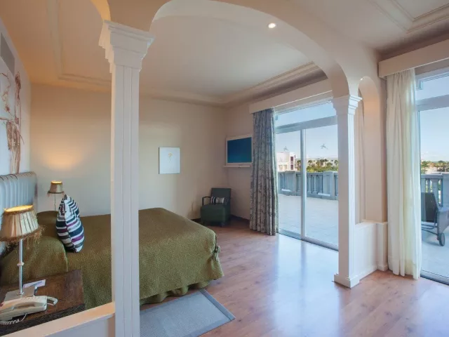 Izby štandard majú približne 51 m² a sú vybavené manželskou posteľou alebo dvoma samostatnými lôžkami, kúpeľňou so sprchou alebo vaňou, WC, fénom, klimatizáciou, minibarom, telefónom, trezorom, TV/sat., pohovkou v obývacej časti, WiFi a terasou alebo balkónom s výhľadom do záhrady, na bazén, do vnútrozemia alebo na ulicu. Junior Suite má približne 96 m² a rovnaké vybavenie ako izby štandard, ale s oddelenou spálňou, pričom niektoré majú čiastočný výhľad na more. Senior Suite je rovnaký ako Junior Suite, avšak omnoho priestrannejší (približne 120 m²).
