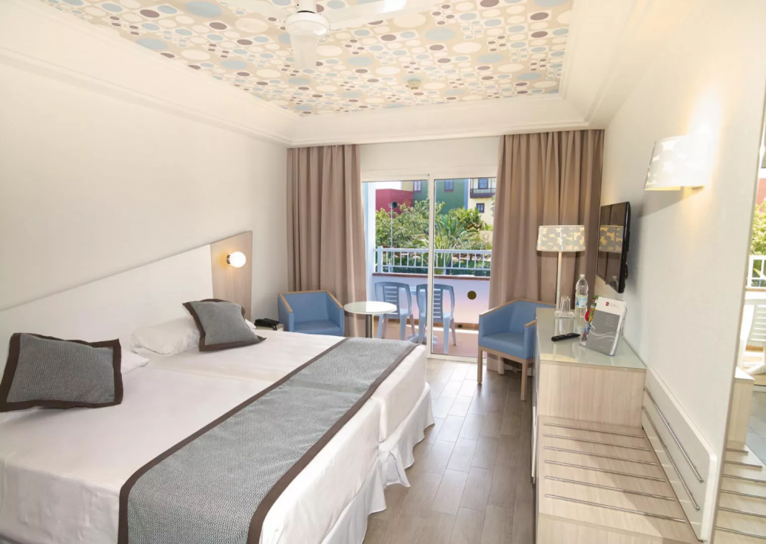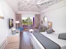 • Dvojlôžková izba: Rozloha izby je 26 m2, Vybavenie: Wi-Fi, sprcha, uteráky, fén, dezinfekcia na ruky, minibar, klimatizácia, trezor, ventilátor, rýchlovarná kanvica, telefón, satelit, TV s plochou obrazovkou, balkón. • Dvojlôžková izba s výhľadom do záhrady: Rozloha izby je 26 m2, Výhľad: záhrada. Vybavenie: Wi-Fi, sprcha, uteráky, fén, dezinfekcia na ruky, minibar, klimatizácia, trezor, ventilátor, rýchlovarná kanvica, telefón, satelit, TV s plochou obrazovkou, balkón. • Dvojlôžková izba s výhľadom do záhrady: Rozloha izby je 28 m2, Výhľad: záhrada, oceán. Vybavenie: Wi-Fi, sprcha, uteráky, fén, dezinfekcia na ruky, minibar, klimatizácia, trezor, ventilátor, rýchlovarná kanvica, telefón, satelit, TV s plochou obrazovkou, balkón. • Trojlôžková izba: Rozloha izby je 28 m2, Vybavenie: Wi-Fi, sprcha, uteráky, fén, dezinfekcia na ruky, minibar, klimatizácia, trezor, ventilátor, rýchlovarná kanvica, telefón, satelit, TV s plochou obrazovkou, balkón. • Trojlôžková izba s výhľadom do záhrady: Rozloha izby je 28 m2, Pohľad: záhrada. Vybavenie: Wi-Fi, sprcha, uteráky, fén, dezinfekcia na ruky, minibar, klimatizácia, trezor, ventilátor, rýchlovarná kanvica, telefón, satelit, TV s plochou obrazovkou, balkón. • Rodinná izba s 1 spálňou a výhľadom do záhrady: Pohodlná rodinná izba s 1 spálňou a rozkladacou pohovkou v obývacej izbe. Rozloha izby: 38 m2, Výhľad: záhrada. Vybavenie: Wi-Fi, sprcha, uteráky, fén, dezinfekcia na ruky, minibar, klimatizácia, trezor, ventilátor, rýchlovarná kanvica, telefón, satelit, TV s plochou obrazovkou, terasa. • Rodinná izba s 2 spálňami a výhľadom do záhrady: Pohodlná rodinná izba s 2 spálňami. Veľkosť: 41 m2, Pohľad: záhrada. Vybavenie: Wi-Fi, sprcha, uteráky, fén, dezinfekcia na ruky, minibar, klimatizácia, trezor, ventilátor, rýchlovarná kanvica, telefón, satelit, TV s plochou obrazovkou, terasa. • Suite s výhľadom do záhrady, terasou a prístupom do bazéna: Komfortná luxusná suita s 1 spálňou, súkromnou terasou a vlastným bazénom. Rozloha suity: 41 m2, Výhľad: záhrada. Vybavenie: Wi-Fi, sprcha, uteráky, fén, dezinfekcia na ruky, minibar, klimatizácia, trezor, ventilátor, rýchlovarná kanvica, telefón, satelit, TV s plochou obrazovkou, terasa, súkromný bazén.