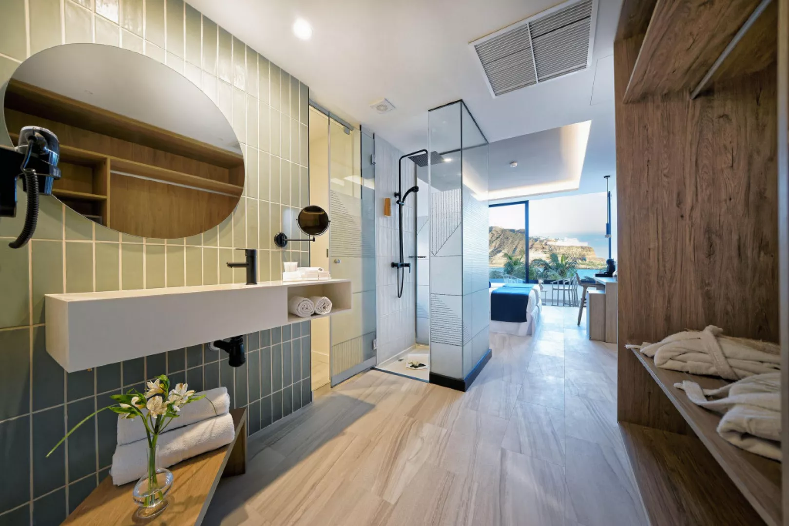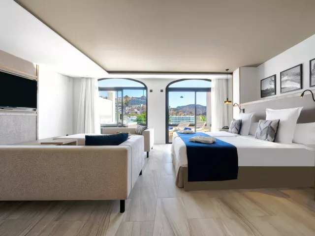 • Štandardná izba Veľkosť izby: 37 m² Výhľad: záhrada, bazén alebo ulica Vybavenie: Wi-Fi zdarma, vaňa alebo sprchový kút, uteráky, fén, šatník, klimatizácia, trezor, chladnička, kávovar, sedací kút, telefón, televízia so satelitným príjmom, plochá obrazovka, pohovka, budiaca služba • Junior Suite Veľkosť izby: 39 m² Výhľad: záhrada, bazén alebo ulica Vybavenie: Wi-Fi zdarma, vaňa alebo sprchový kút, uteráky, fén, šatník, klimatizácia, trezor, chladnička, kávovar, sedací kút, telefón, televízia so satelitným príjmom, plochá obrazovka, pohovka, budiaca služba • Junior Suite s výhľadom na oceán Veľkosť izby: 39 m² Výhľad: oceán Vybavenie: Wi-Fi zdarma, vaňa alebo sprchový kút, uteráky, fén, šatník, klimatizácia, trezor, chladnička, kávovar, sedací kút, telefón, televízia so satelitným príjmom, plochá obrazovka, pohovka, budiaca služba • Suit s výhľadom na oceán Veľkosť izby: 80 m² Výhľad: oceán alebo záhrada Vybavenie: Wi-Fi zdarma, vaňa alebo sprchový kút, uteráky, fén, šatník, klimatizácia, trezor, chladnička, kávovar, sedací kút, telefón, televízia so satelitným príjmom, plochá obrazovka, pohovka, budiaca služba, jacuzzi na balkóne, ležadlá a nádherný výhľad • Privilege Junior Suite Veľkosť izby: 38 m² Výhľad: oceán Vybavenie: Wi-Fi zdarma, dve veľké jednolôžkové postele, vankúšový menu, sprchový kút, bazénové uteráky, župan a papuče, fén, šatník, klimatizácia, trezor zdarma, minibar, Nespresso kávovar s kapsulami, sedací kút, telefón, televízia so satelitným príjmom, plochá obrazovka, pohovka, budiaca služba, uvítací darček, 24-hodinová izbová služba, balkón alebo terasa • Superior Junior Suite s výhľadom na oceán Veľkosť izby: 38 m² Výhľad: oceán Vybavenie: Wi-Fi zdarma, vaňa alebo sprchový kút, uteráky, fén, šatník, klimatizácia, trezor, chladnička, kávovar, sedací kút, telefón, televízia so satelitným príjmom, plochá obrazovka, pohovka, budiaca služba