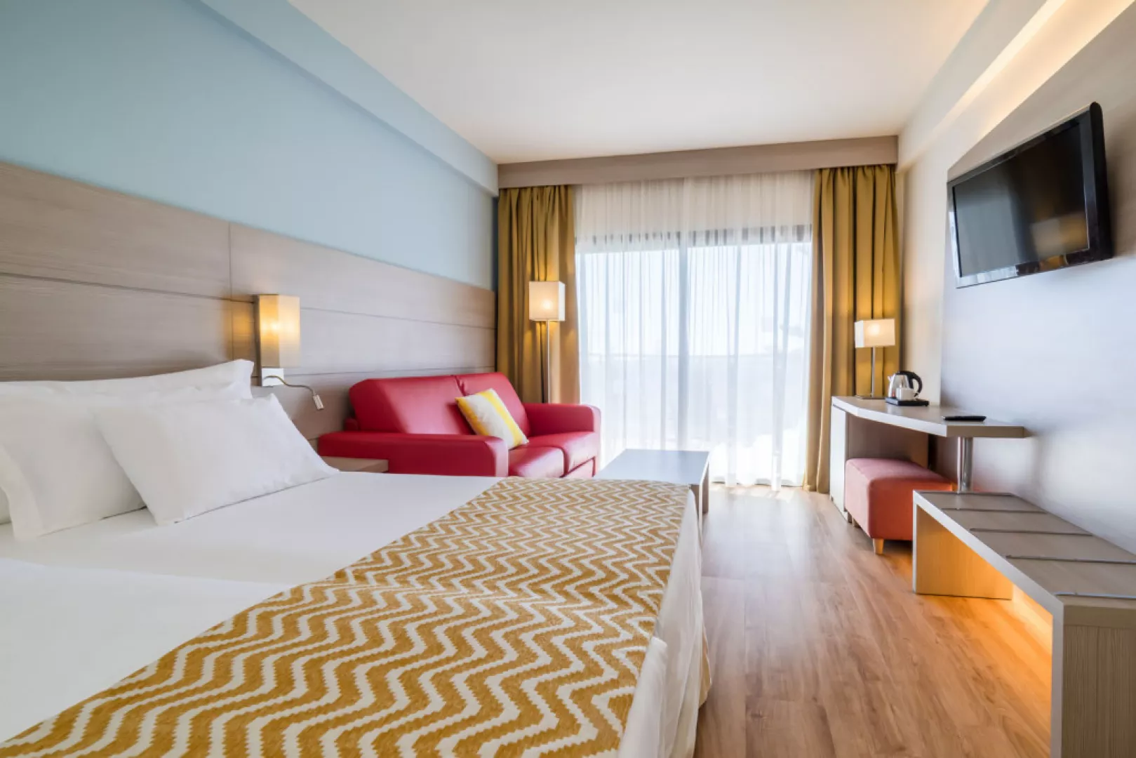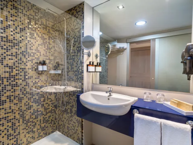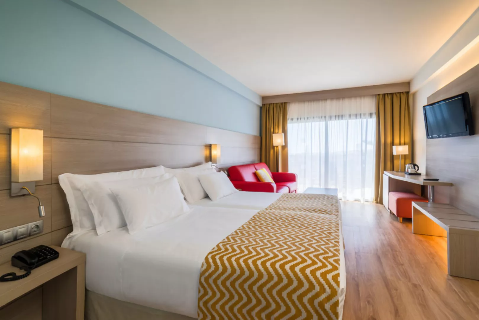 • Dvojlôžková Izba Klimatizovaná izba s balkónom, manželskou posteľou a rýchlovarnou kanvicou. Rozloha iizby: 35 m2 Výhľad: záhrada, bazén, ulica Vybavenie: Wi-Fi, sprcha, fén, klimatizácia, trezor, rýchlovarná kanvica, telefón, satelitné programy, TV s plochou obrazovkou, balkón. • Izba Deluxe Klimatizovaná izba s balkónom, manželskou posteľou a rýchlovarnou kanvicou. Túto izbu je možné rezervovať iba pre osoby staršie ako 16 rokov. Rozloha izby: 45 m2 Výhľad: záhrada, bazén Vybavenie: Wi-Fi, sprcha, fén, klimatizácia, trezor, rýchlovarná kanvica, telefón, satelitné programy, TV s plochou obrazovkou, balkón • Rodinná izba: Klimatizovaná izba s balkónom, manželskou posteľou a rýchlovarnou kanvicou. Rozloha izby: 45 m2 Výhľad: záhrada, bazén Vybavenie: Wi-Fi, sprcha, fén, klimatizácia, trezor, rýchlovarná kanvica, telefón, satelitné programy, TV s plochou obrazovkou, balkón