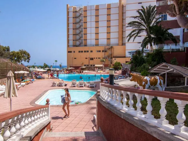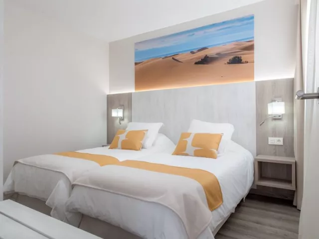 Hotel ponúka štúdiá a 1- a 2-izbové apartmány, takže môže poskytnúť komfortné riešenie aj pre väčšie skupiny. V hornej časti hotela je slnečná terasa s nádherným výhľadom až na duny Maspalomas.