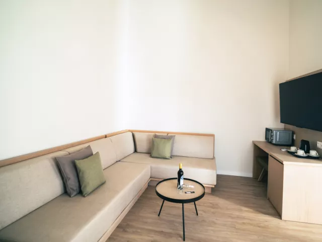 Štandardný bungalov Rozloha: 34 m² Výhľad: Záhrada alebo záhrada/bazén Vybavenie: Obývacia izba s pohovkou, spálňa s manželskou posteľou alebo 2 oddelenými lôžkami, detská postieľka (na požiadanie, zdarma), kúpeľňa (sprcha, sušič vlasov, toaletné potreby), kuchynský kút (malá chladnička, mikrovlnná rúra, kávovar, rýchlovarná kanvica), trezor (za poplatok), klimatizácia/kúrenie, Smart-TV, terasa. • Superior bungalov Rozloha: 40 m² Výhľad: Záhrada alebo záhrada/bazén Vybavenie: Obývacia izba s pohovkou, spálňa s manželskou posteľou alebo 2 oddelenými lôžkami, detská postieľka (na požiadanie, zdarma), kúpeľňa (sprcha, sušič vlasov, toaletné potreby), kuchynský kút (malá chladnička, mikrovlnná rúra, kávovar, rýchlovarná kanvica), klimatizácia/kúrenie, trezor (za poplatok), Smart-TV, terasa s priamym vstupom do záhrady. • Superior štúdio Rozloha: 30 m² Výhľad: Záhrada alebo záhrada/bazén Vybavenie: Obývacia izba s pohovkou, spálňa s manželskou posteľou alebo 2 oddelenými lôžkami, detská postieľka (na požiadanie, zdarma), kúpeľňa (sprcha, sušič vlasov, toaletné potreby), kuchynský kút (malá chladnička, mikrovlnná rúra, kávovar, rýchlovarná kanvica), klimatizácia/kúrenie (za poplatok), Smart-TV, terasa. • Junior suita – iba pre dospelých Rozloha: 42 m² Výhľad: Záhrada alebo záhrada/bazén Vybavenie: Obývacia izba s pohovkou, spálňa s manželskou posteľou alebo 2 oddelenými lôžkami, detská postieľka (na požiadanie, zdarma), kúpeľňa (sprcha, sušič vlasov, toaletné potreby), kuchynský kút (malá chladnička, mikrovlnná rúra, kávovar, rýchlovarná kanvica), klimatizácia/kúrenie, trezor (za poplatok), Smart-TV Extra: Šatníková miestnosť, terasa s priamym vstupom do bazéna, Wi-Fi pripojenie v „adults only“ spoločných priestoroch. • Superior Junior suita – iba pre dospelých Rozloha: 48 m² Výhľad: Záhrada alebo záhrada/bazén Vybavenie: Obývacia izba s pohovkou, spálňa s manželskou posteľou alebo 2 oddelenými lôžkami, detská postieľka (na požiadanie, zdarma), kúpeľňa (sprcha, sušič vlasov, toaletné potreby), kuchynský kút (malá chladnička, mikrovlnná rúra, kávovar, rýchlovarná kanvica), klimatizácia/kúrenie, trezor, Smart-TV Extra: Šatníková miestnosť, súkromná terasa so vstupom do záhrady, súkromný bazén, Wi-Fi pripojenie v „adults only“ spoločných priestoroch. • Suita – iba pre dospelých Rozloha: 52 m² Výhľad: Záhrada alebo záhrada/bazén Vybavenie: Oddelená obývacia izba (s pohovkou) a spálňa (s manželskou posteľou alebo 2 oddelenými lôžkami), detská postieľka (na požiadanie, zdarma), kúpeľňa (sprcha, sušič vlasov, toaletné potreby), kuchynský kút (malá chladnička, mikrovlnná rúra, kávovar, rýchlovarná kanvica), klimatizácia/kúrenie, trezor, Smart-TV Extra: Šatníková miestnosť, súkromná terasa so vstupom do záhrady, súkromný bazén, Wi-Fi pripojenie v „adults only“ spoločných priestoroch.