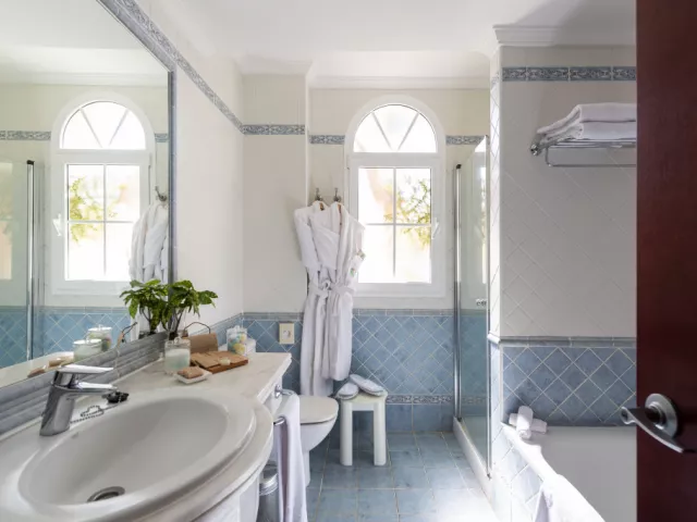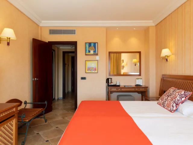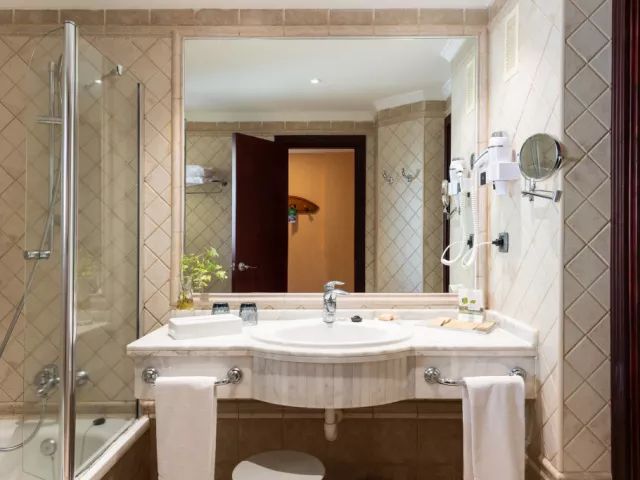 • Dvojlôžková izba Rozloha izby: 30 m2 Vybavenie: 2 jednolôžkové spojené postele, klimatizácia, Wi-Fi zdarma, satelitná TV, telefón na pevnú linku (za príplatok), trezor (za príplatok), písací stôl, chladnička (s možnosťou minibaru), rýchlovarná kanvica, kúpeľňa s vaňou, sušič vlasov, zväčšovacie zrkadlo, toaletné potreby, zariadený balkón alebo terasa • Suita Junior Rozloha suity: 39 m2 Vybavenie: 2 jednolôžkové spojené postele v samostatnej spálni, obývacia izba s rozkladacou pohovkou, klimatizácia, bezplatné Wi-Fi, satelitná TV, telefón na pevnú linku (za príplatok), trezor (za príplatok), písací stôl, chladnička (s možnosťou minibaru ), rýchlovarná kanvica, príslušenstvo na prípravu kávy/čaju, kúpeľňa s vaňou, sprchou, sušič vlasov, zväčšovacie zrkadlo, toaletné potreby, župan, váha, zariadený balkón alebo terasa s ležadlami, stolom a stoličkami Hostia ubytovaní v suite Junior si môžu vychutnať raňajky na špeciálnom mieste v blízkosti hotelovej časti Suites.
